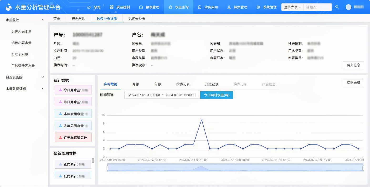 通過為部分特殊老年用戶試點安裝智能遠傳水表,結合水量分析平臺,應用物聯(lián)網(wǎng)、大數(shù)據(jù)等數(shù)字化技術,實現(xiàn)對老年用戶每日用水情況的“云動態(tài)監(jiān)測”,一旦出現(xiàn)長時間未用水、多日用水量大等異常情況,平臺將立即發(fā)出預警提示。公司工作人員通過短信、微信、智能語音、社區(qū)聯(lián)動、上門走訪等多種方式,了解老年用戶居家用水情況,提醒可能存在的內(nèi)部用水設施故障等異常情況,為老年用戶提供更加安全、可靠的精準化用水保障。
