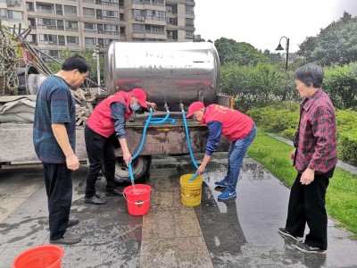 由于搶修正值用水高峰時段,路面開挖點的正下方還有四根供水管網并列排布,給搶修工作造成了不小困難。為保障小區居民的用水需求,管網所黨支部立刻安排黨員隊伍輪班送水,配合搶修工作同步進行。當班黨員們按照應急排班表,有條不紊開展送水行動,從四點一直忙碌到晚上八點半,直到搶修完成恢復供水后才離開。