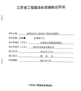 為保障用水安全,江蘇省于2014年出臺(tái)了《居民住宅二次供水工程技術(shù)規(guī)程》,對(duì)二次供水工程的各個(gè)環(huán)節(jié)進(jìn)行了規(guī)范。近年來,許多新材料、新設(shè)備、新工藝在二次供水領(lǐng)域不斷涌現(xiàn),原規(guī)程的部分條款已無法適應(yīng)當(dāng)前形勢(shì),對(duì)該技術(shù)規(guī)程的修訂已成為我省城市發(fā)展的迫切需求。