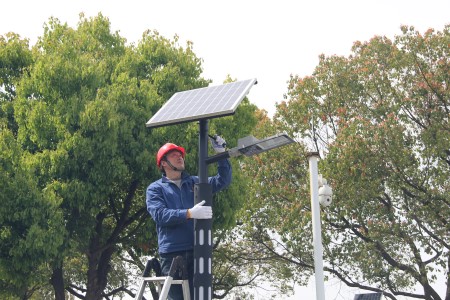 白洋灣水廠全廠共計(jì)88個(gè)路燈,一直采用220V有線電源供電。長(zhǎng)期以來(lái),由于線路老化、絕緣性能下降,路燈運(yùn)行故障率偏高。為準(zhǔn)確查找和排除故障,經(jīng)常需要開(kāi)挖路面、破壞綠化,每年都需為此支付較高的維修及管理成本。為此,白洋灣水廠積極探索節(jié)能降耗新舉措,經(jīng)過(guò)反復(fù)的市場(chǎng)調(diào)研、技術(shù)討論,決定探索性嘗試太陽(yáng)能板供電方式,2019年底水廠先后投入1萬(wàn)余元,試點(diǎn)完成了廠區(qū)主干道19個(gè)路燈的照明改造。不僅讓路燈照明環(huán)境得到大幅改善,而且性能穩(wěn)定、安全性高、維護(hù)工作量小,受到了職工的廣泛好評(píng)。