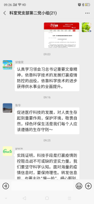 科室黨支部依托微信語音、視頻聊天等功能,組織黨員學習貫徹黨的十九屆四中全會精神,通過在線討論,不斷增強“四個意識”,堅定“四個自信”,做到“兩個維護”,為打贏疫情防控阻擊戰提供堅強的思想政治保證。科室黨支部還通過“學習強國”平臺的“強國視頻會議”功能,詳細部署年度“書記項目”,從指導思想、項目內容、組織實施、工作保障等方面進行解讀和布置。