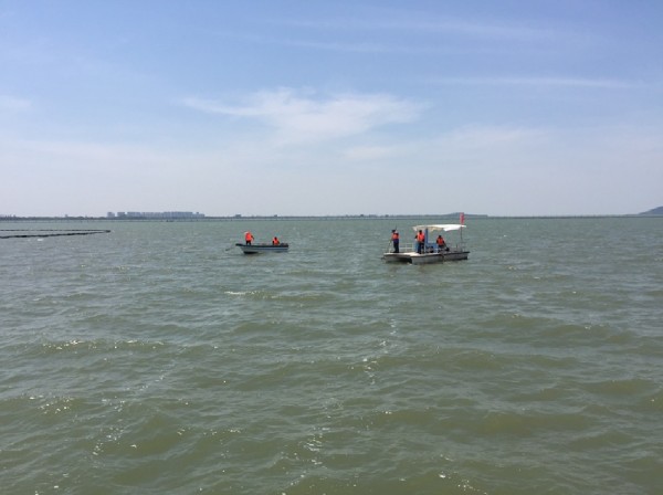 為預防藍藻發生,在太湖水源地湖面,兩艘打撈船正在作業,清理零星漂浮在湖面上的水草。蘇州市自來水有限公司白洋灣水廠廠長曹勇介紹說,專業的水草保潔隊伍,每天都在一級水源地保護區,1300畝的水域內作業。目前是低藻期,到了高藻期,會增加人員設備,來應對藍藻帶來的水質變化,確保蘇州市民飲用水安全。