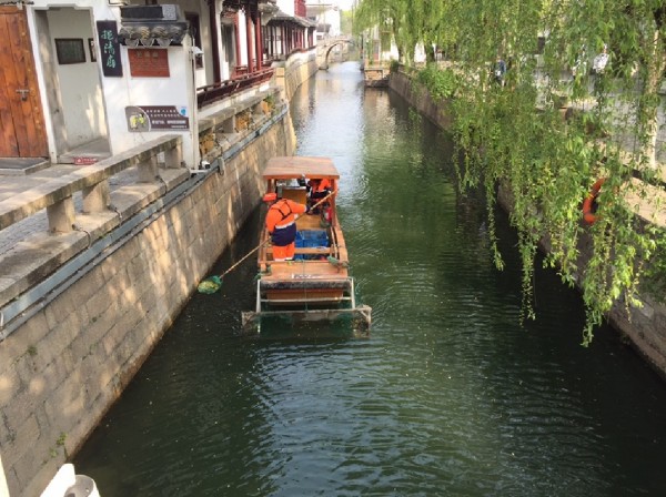 城區河道目前暫時還未有明顯藍藻聚集,但市河道管理處未雨綢繆配備了專業人工打撈船20條、專業打撈人員40人。還準備好了藍藻機械打撈船3條、簡易型吸藻船7條、吸藻泵45套、藍藻專業處置船1條、藍藻處置車1輛、藍藻圍格620米,藍藻尼龍攔截網6000米。新購的圍檔式漂浮物(藍藻)自動打撈船也即將到位。