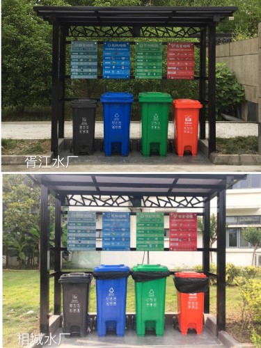 垃圾分類收集亭放置了可回收垃圾、其它垃圾、有害垃圾和廚余垃圾這四類垃圾桶,并設置相對應的圖標和分類知識海報,為引導職工真正做到、做好垃圾分類并進行引導和規范,在培養公司全員環保意識的同時,切實提高公司垃圾分類工作的質量和時效。