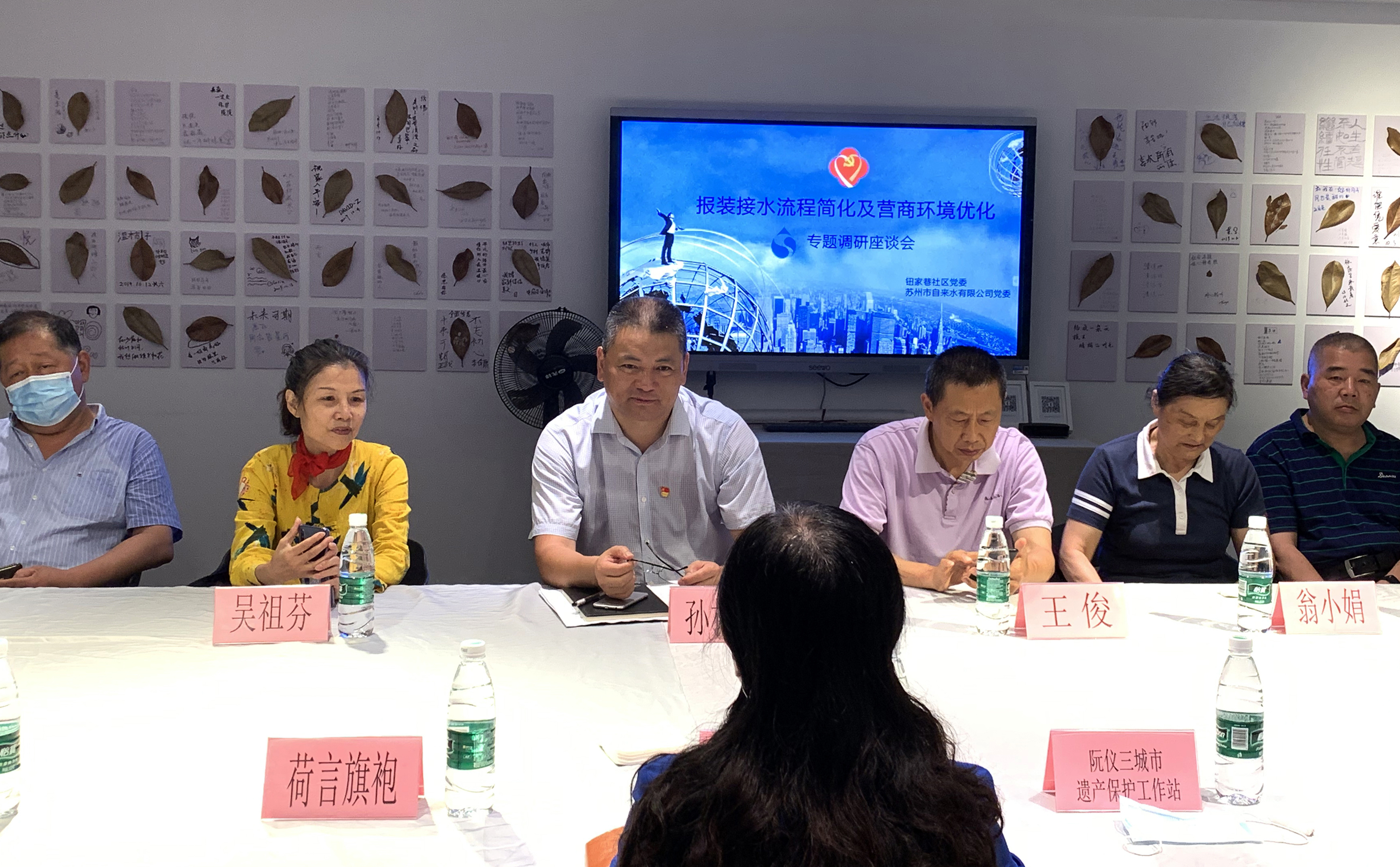 座談會上,孫林忠書記與蘇州大都物業、蘇州觀璟房產有限公司、荷言旗袍等七家商戶及鳳池弄8戶居民代表,就社區普遍關心的供用水生產、服務工作進行了深入交流,詳細聽取了與會代表對公司社區服務網格化管理、報裝接水流程優化、消火栓結對管理等方面的意見和建議。會后,孫林忠書記現場走訪了沿街多個商戶,實地了解社區居民反映的用水難題,并對解決方案做出具體部署。