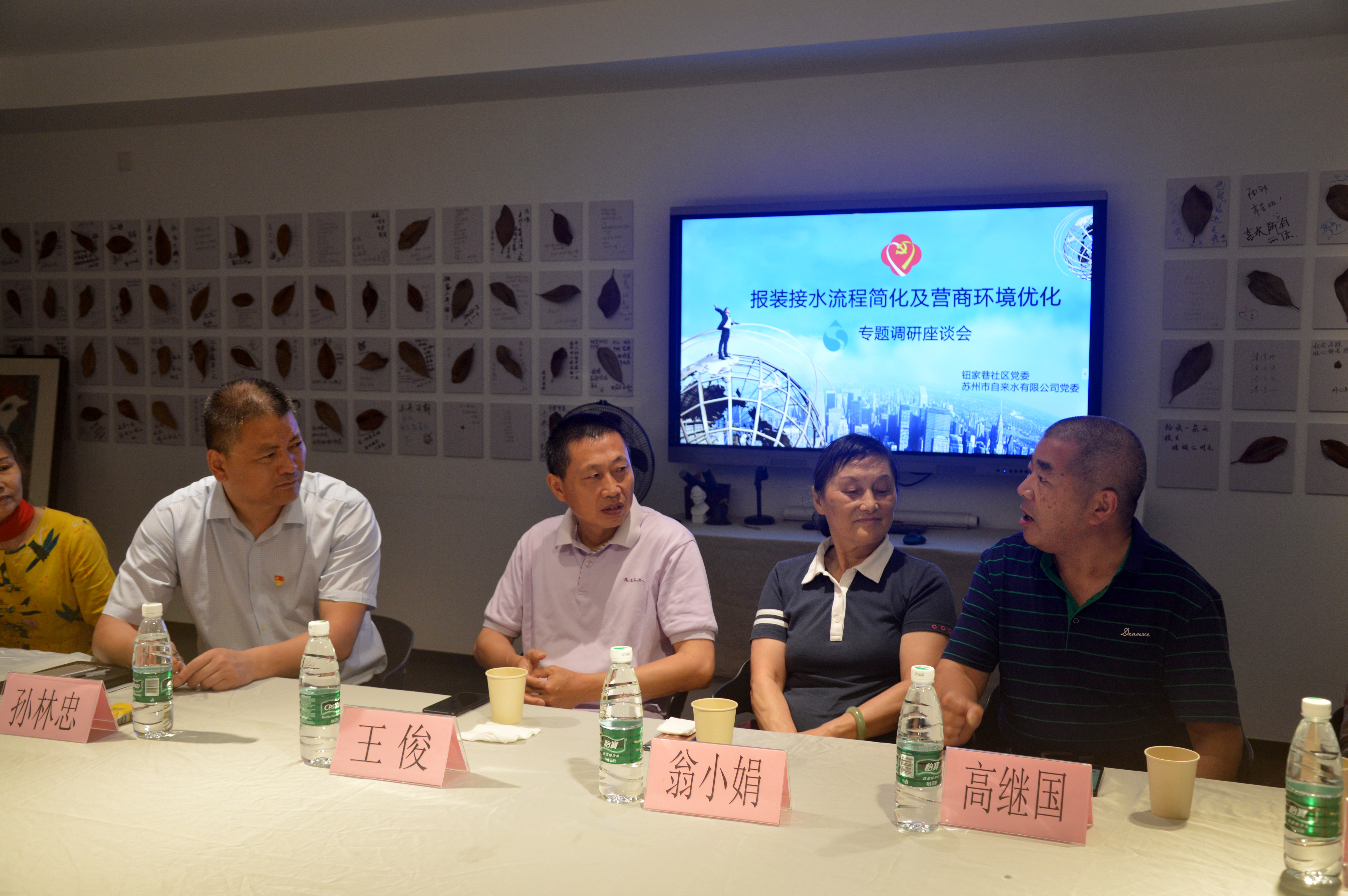 6月16日,市自來水公司黨委書記、董事長孫林忠前往鈕家巷社區,開展“報裝接水流程簡化及營商環境優化”專題調研,社區張英纓書記主持會議并做交流發言。