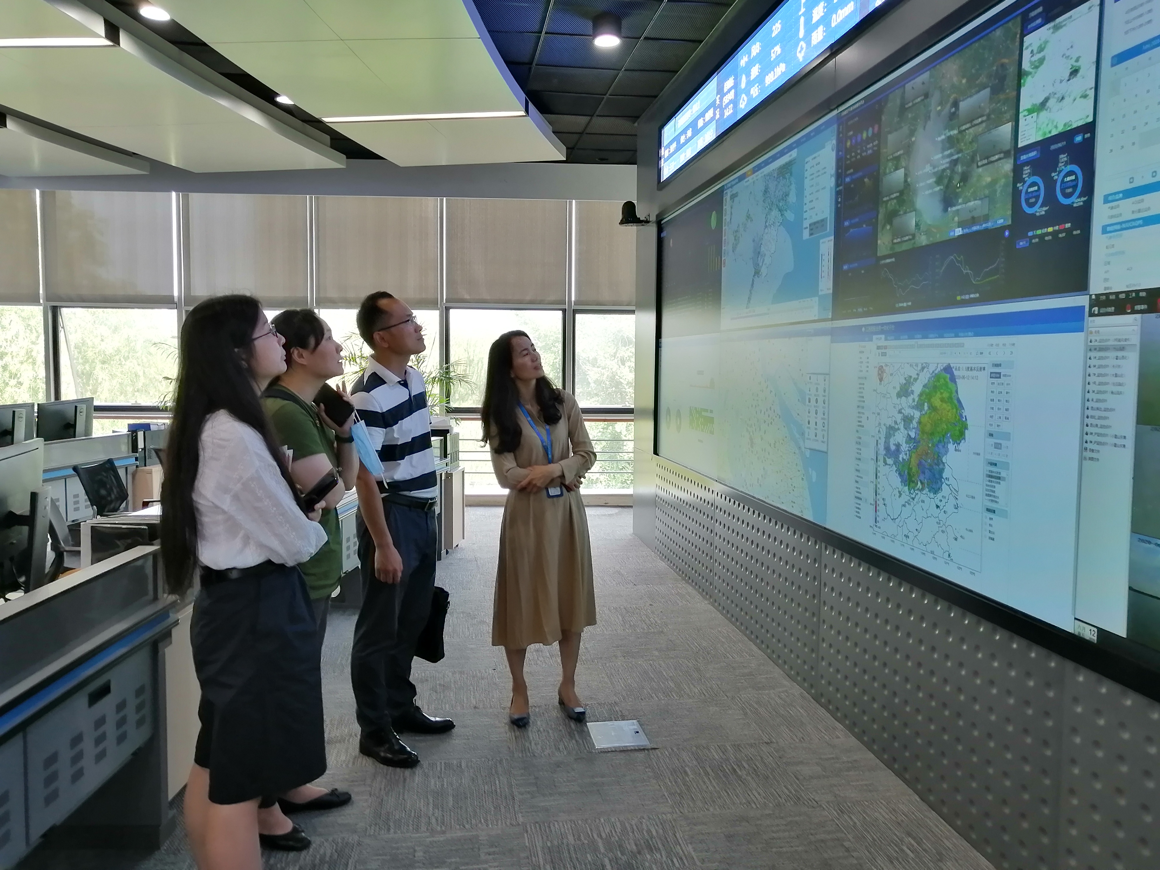 在市氣象局林主任的帶領下,考察組參觀了蘇州市氣象預報中心,全面了解氣象局現有監測項目、相關服務內容以及風向、風力、降水、雷暴等氣象數據的相關預測時限和準確性情況。雙方就水司生產調度和氣象條件的相關性和供水調度對氣象預報服務的需求進行了深入探討。