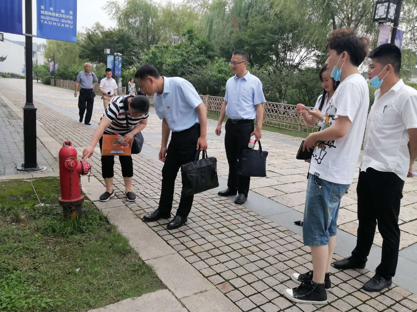 會后,蔣總現場先后走訪了唐寅故居文化區和桃塢才苑小區,實地了解商戶反映的消火栓損壞、商戶報裝接水以及垃圾分類點供水設施安裝等問題,還重點走訪了韓衙莊11號東用戶,并對用水問題做出具體方案部署。