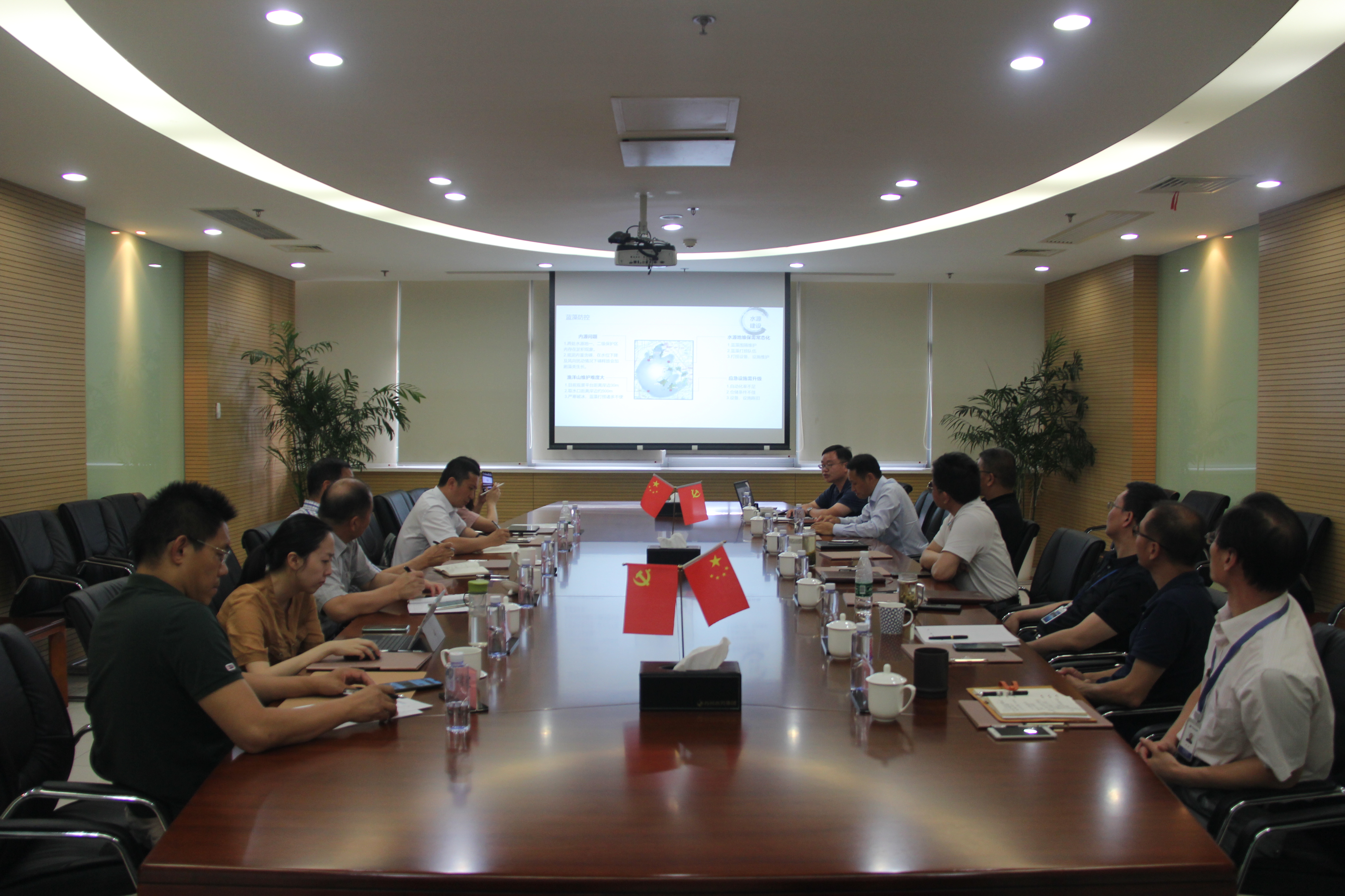 在調(diào)度中心,公司生產(chǎn)處向周局長重點(diǎn)匯報了公司目前供水情況、高峰供水前期準(zhǔn)備和應(yīng)急調(diào)度預(yù)案等主要工作。在隨后召開的交流會上,周局長要求公司嚴(yán)格落實(shí)各項(xiàng)安全保供措施,積極做好高峰供水期間的應(yīng)急保障工作,確保不讓一滴不合格的自來水流入市政管網(wǎng),全力保障蘇城百姓飲安全水、用放心水。