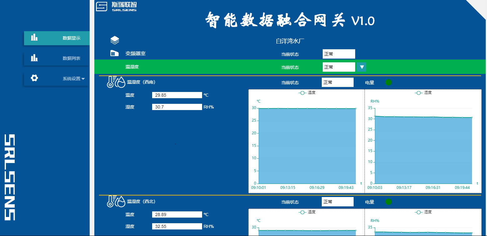 本次項目在水廠高壓變頻器室設置了4個無線溫、濕度監測點,這些監測點不需布線、不需電源,通過現場網關借用廠內原有辦公網絡,即可將現場數據上傳至監控電腦,巡檢人員也可在現場通過手機實時查詢溫、濕度數據。通過網關中設置的報警限值,系統可自動發送報警信息至監控電腦,極大地提高了生產控制系統的安全性。