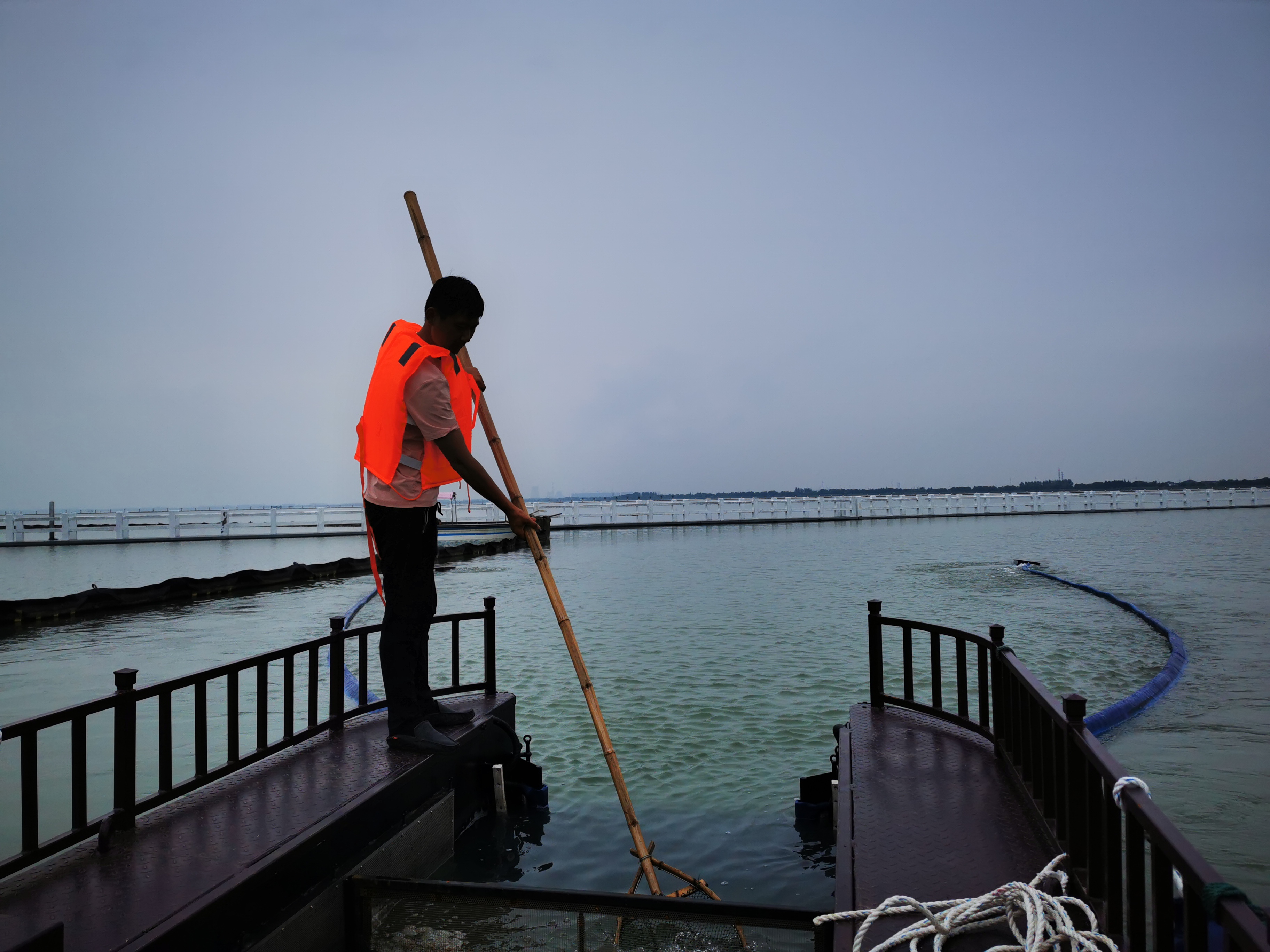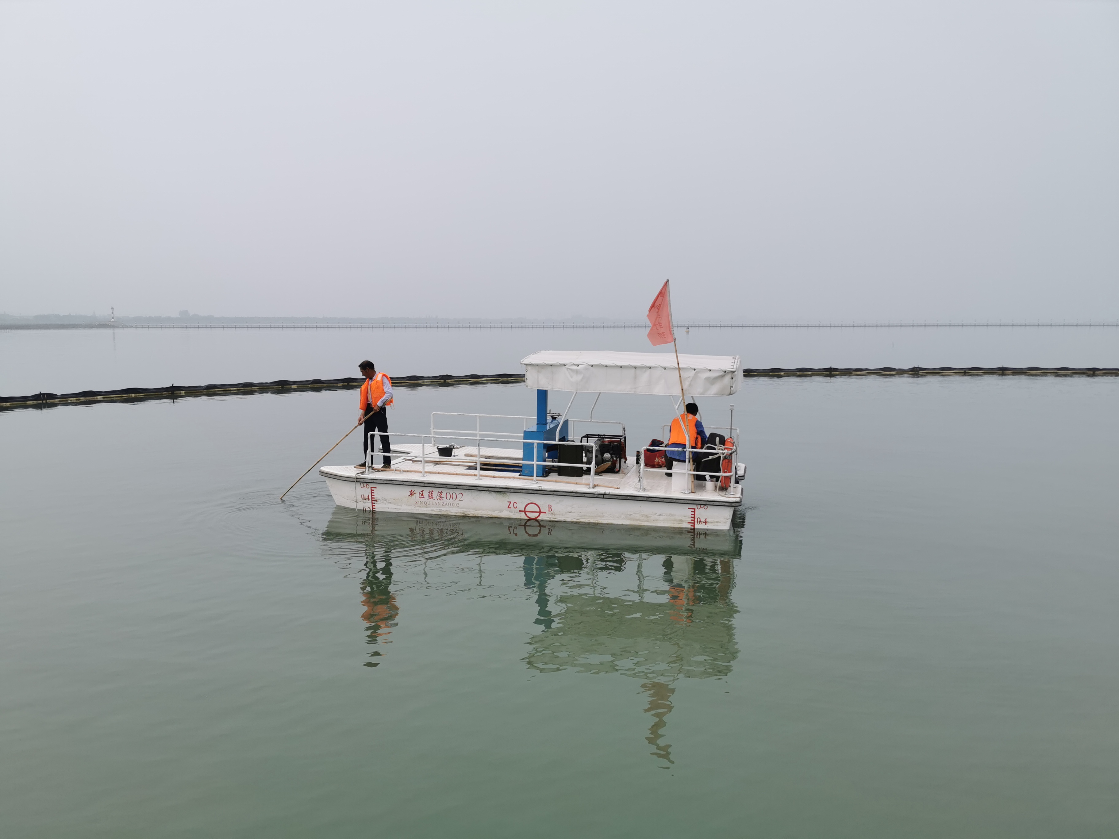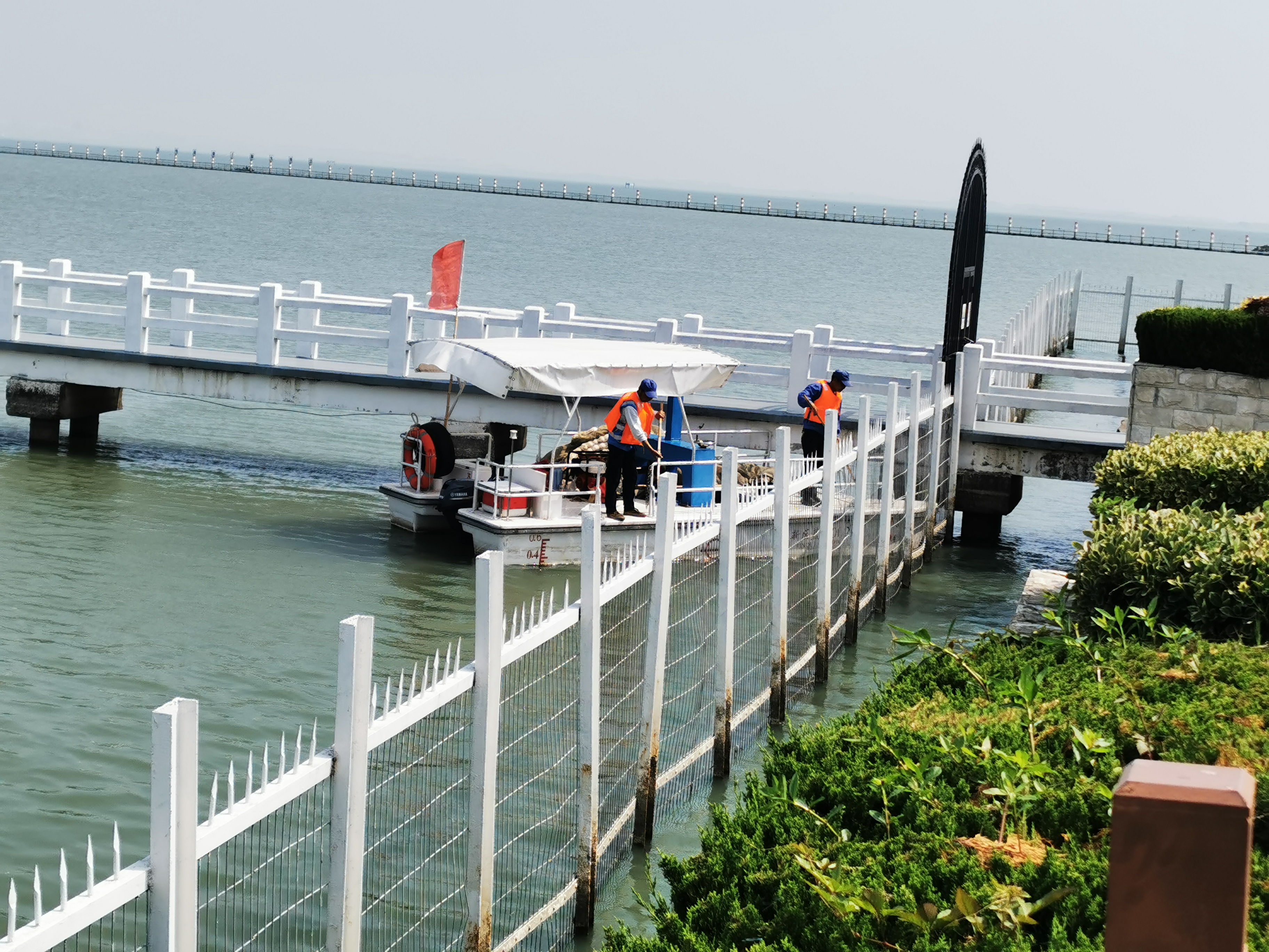 聯合專業保潔單位,加大打撈船只和作業人員的儲備。今年,公司添置了4艘藍藻智能清理船,并研發配備了“可移動的收集口”,幫助藍藻打撈船在無法駛入近岸點的狀況下仍能覆蓋近岸區域,全面提升藍藻打撈和處置效率。