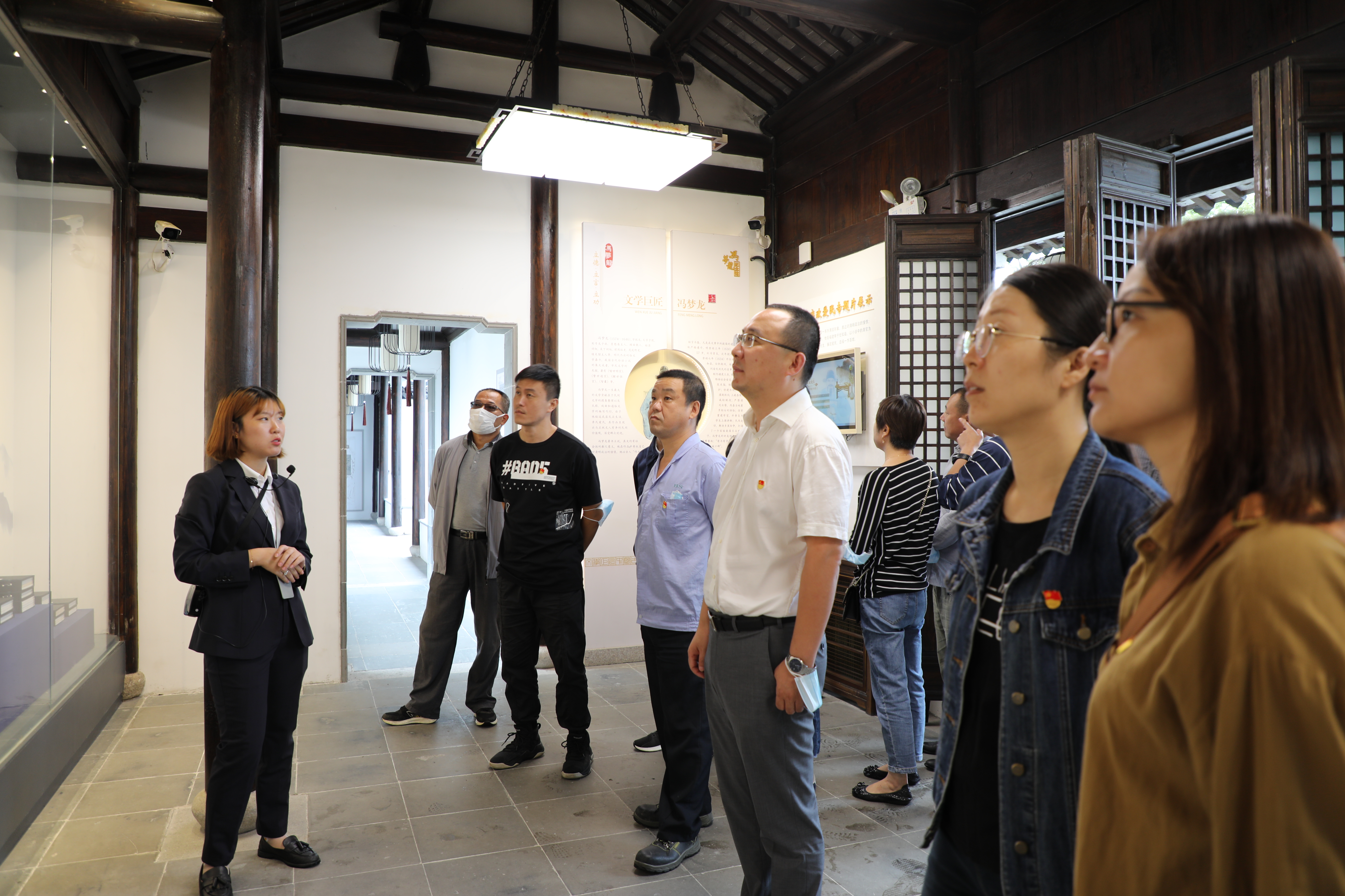 隨后全體人員驅車來到馮夢龍紀念村。在講解員的帶領下,黨員們先后參觀了馮夢龍故居、紀念館、書院和四知堂等多個場館,多方面了解馮夢龍的人生軌跡以及廉政勤政、親民愛民的事跡。參觀中,黨員們還通過實景互動屏聽取了千里之外的導游現場講述戴清亭與東壩的故事。馮夢龍一生為民、務實、勤廉的形象和“勤、公、實、廉”的為官之道令大家深受觸動,他所秉持的“濟世為民,兩袖清風”的執政理念,不僅造福一方百姓,更豎起勤政廉潔、為民務實的精神標桿。