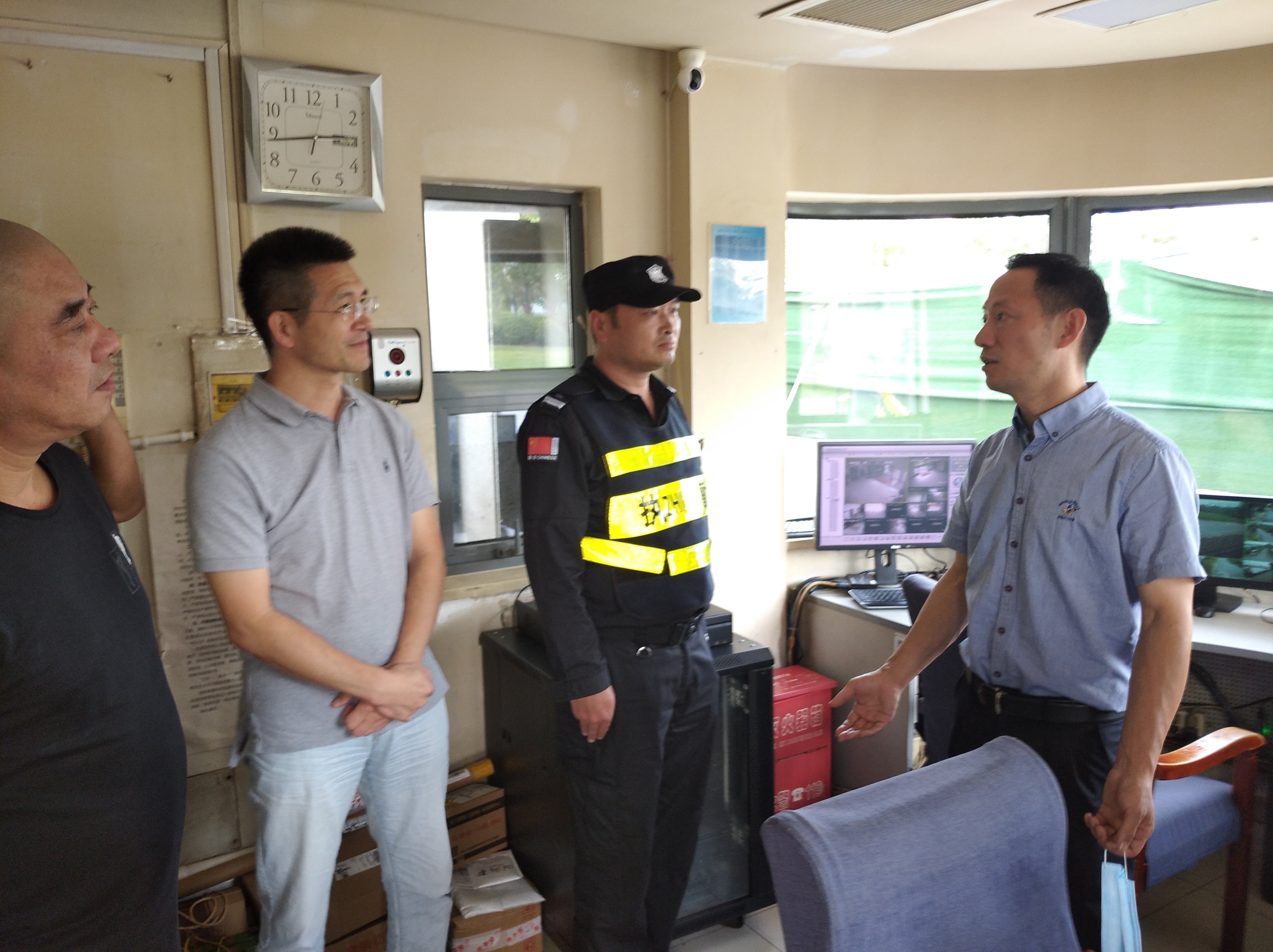 9月28日,省公安廳暗訪組駕駛蘇E牌照轎車,擬從相城水廠南門路口駛?cè)?,模擬測試公司安保措施執(zhí)行情況。值班保安根據(jù)應(yīng)急處置制度當即攔下陌生車輛,第一時間報告安全管理處,隨后暗訪組出示相關(guān)證件,在安全管理處的陪同下現(xiàn)場查看了水廠技防設(shè)施,公司順利通過此次暗訪檢查。