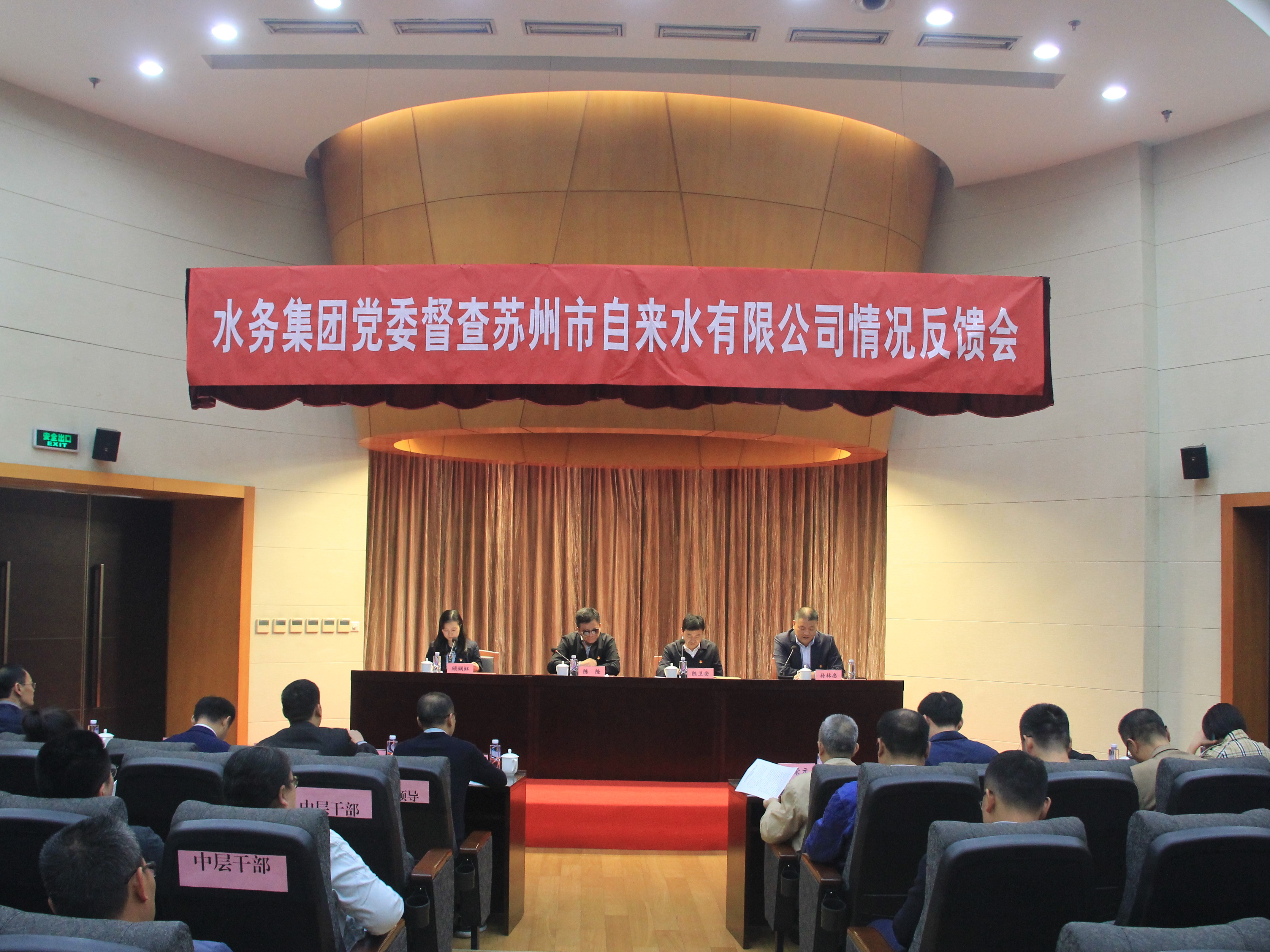 10月28日下午,蘇州水務集團召開督查市自來水公司情況反饋會,公司黨委書記、董事長孫林忠主持會議,集團黨委副書記、副董事長、總經理陳隆,集團黨委副書記、紀委書記、工會主席陳衛安出席會議并作重要講話。集團綜合督查組全體成員,公司領導班子、全體中層干部和科室職工參加會議。