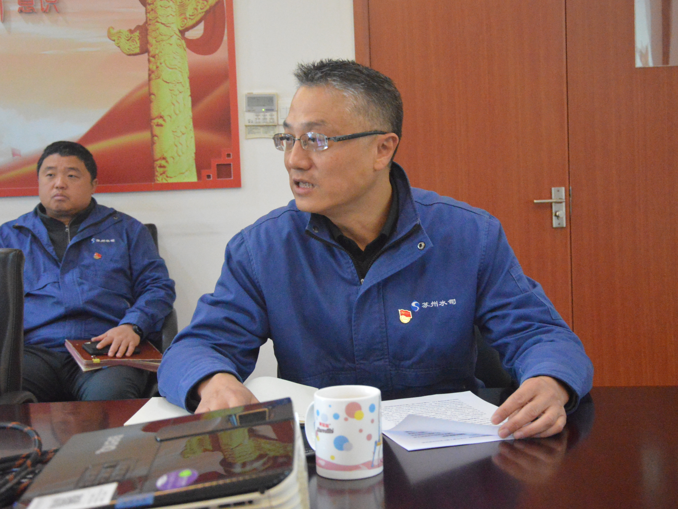 12月3日,市政府副秘書長張劍一行兩人赴市自來水公司供水管網所、供水營業所聯合黨支部開展黨建調研。蘇州水務集團黨委副書記、副董事長、總經理陳隆,公司黨委書記、董事長孫林忠陪同調研。