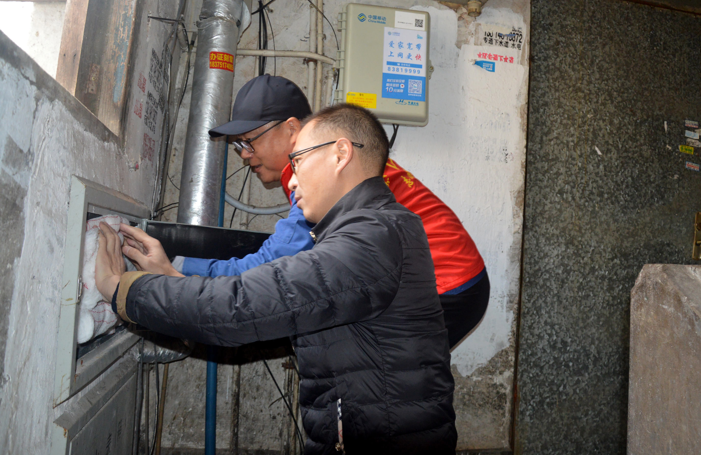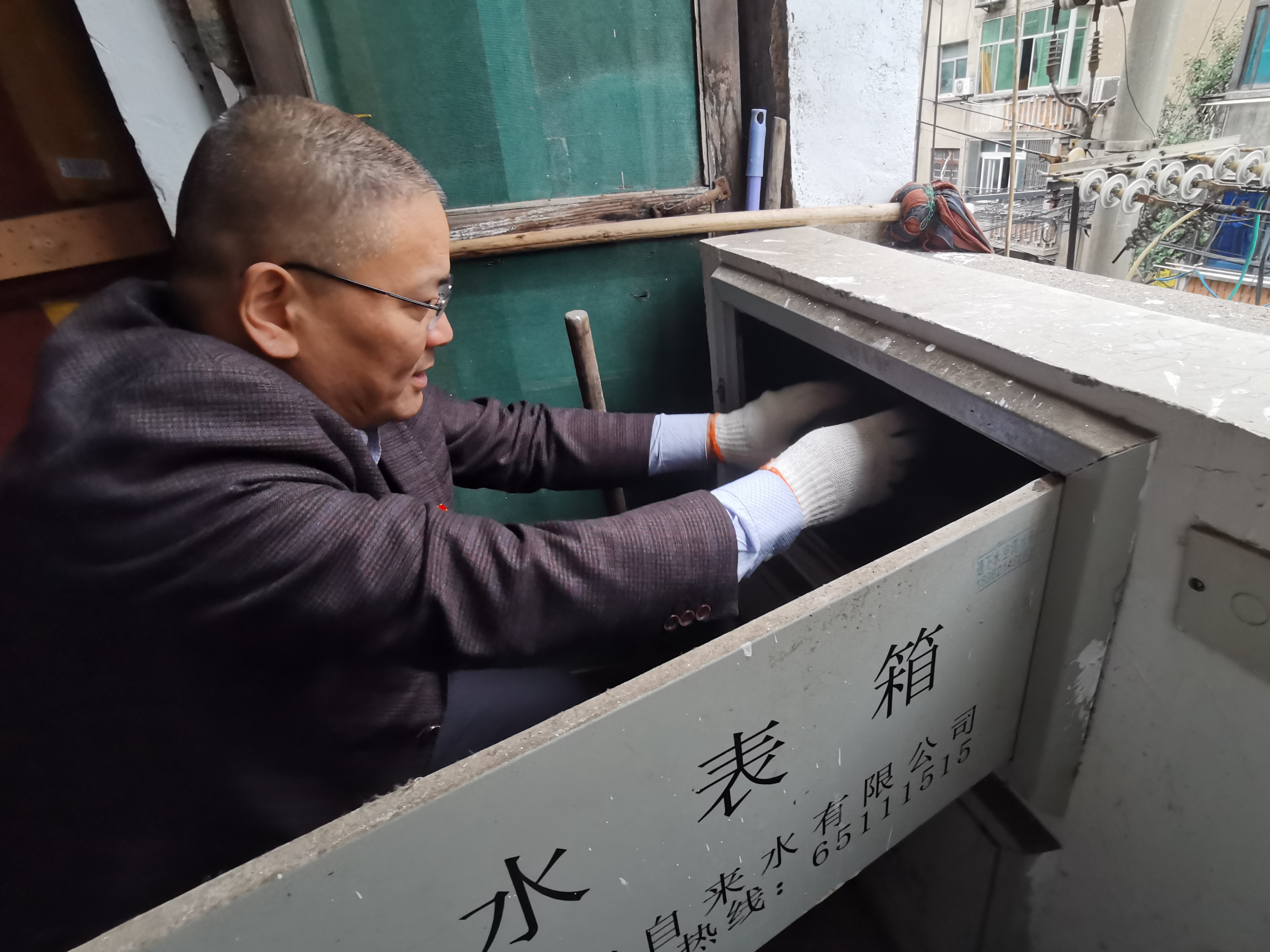 公司黨委書記、董事長孫林忠在鐘樓社區帶領黨員們檢查社區樓道內單元閥、居民供水立管、槽板、水表箱的保溫情況,并積極向鐘樓社區黨總支書記王秋月宣傳水表防凍注意點,并詳細講解了公司抗寒保供的部署工作。