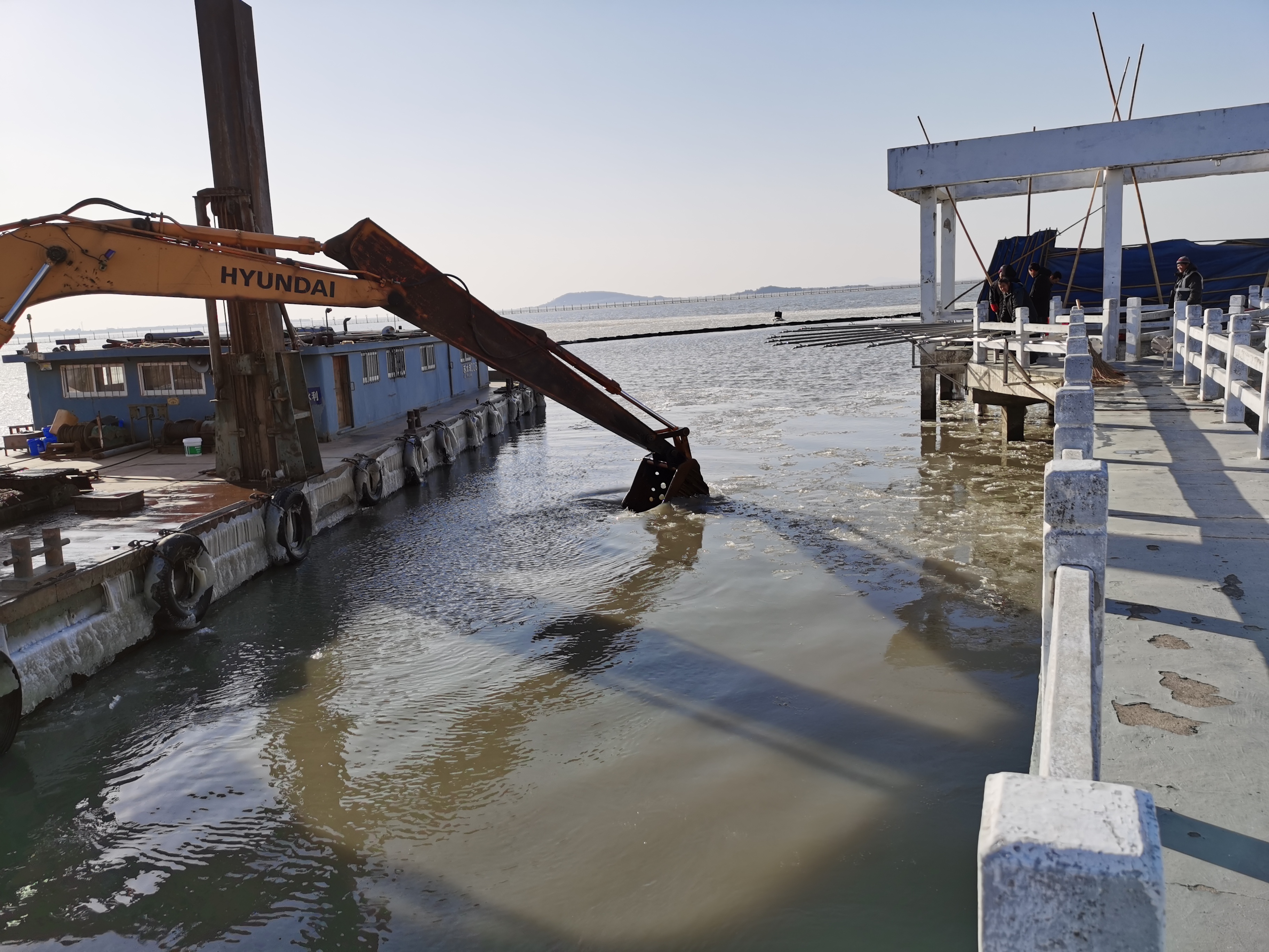 持續的嚴重冰凍天氣導致太湖和陽澄湖湖面結冰,有兩個取水口的金墅港水源地還增派了一艘破冰船和破冰人員,早已嚴陣以待的機械破冰船從夜里就開始發揮功效,輔以定制破冰桿人工疏通,防止吸水盆被凍結,泵房值班人員密切巡視并關注吸水井液位。管網所加強冰凍天氣的渾水管巡視,及時發現白洋灣和相城水廠渾水管發生的漏點并完成搶修,公司通過一體化調度模式合理調配各水源地渾水量供應,調度中心合理調控三廠出廠水量,多方配合有效化解了嚴重冰凍對水廠渾水取水和供水調度的影響。面對破冰可能對水源地底泥造成一定的擾動,水廠還加強了原水、過程水和出廠水水質監測,密切根據原水水質和水量變化及時調整凈水工藝,從而確保供水水質安全和水量充足。