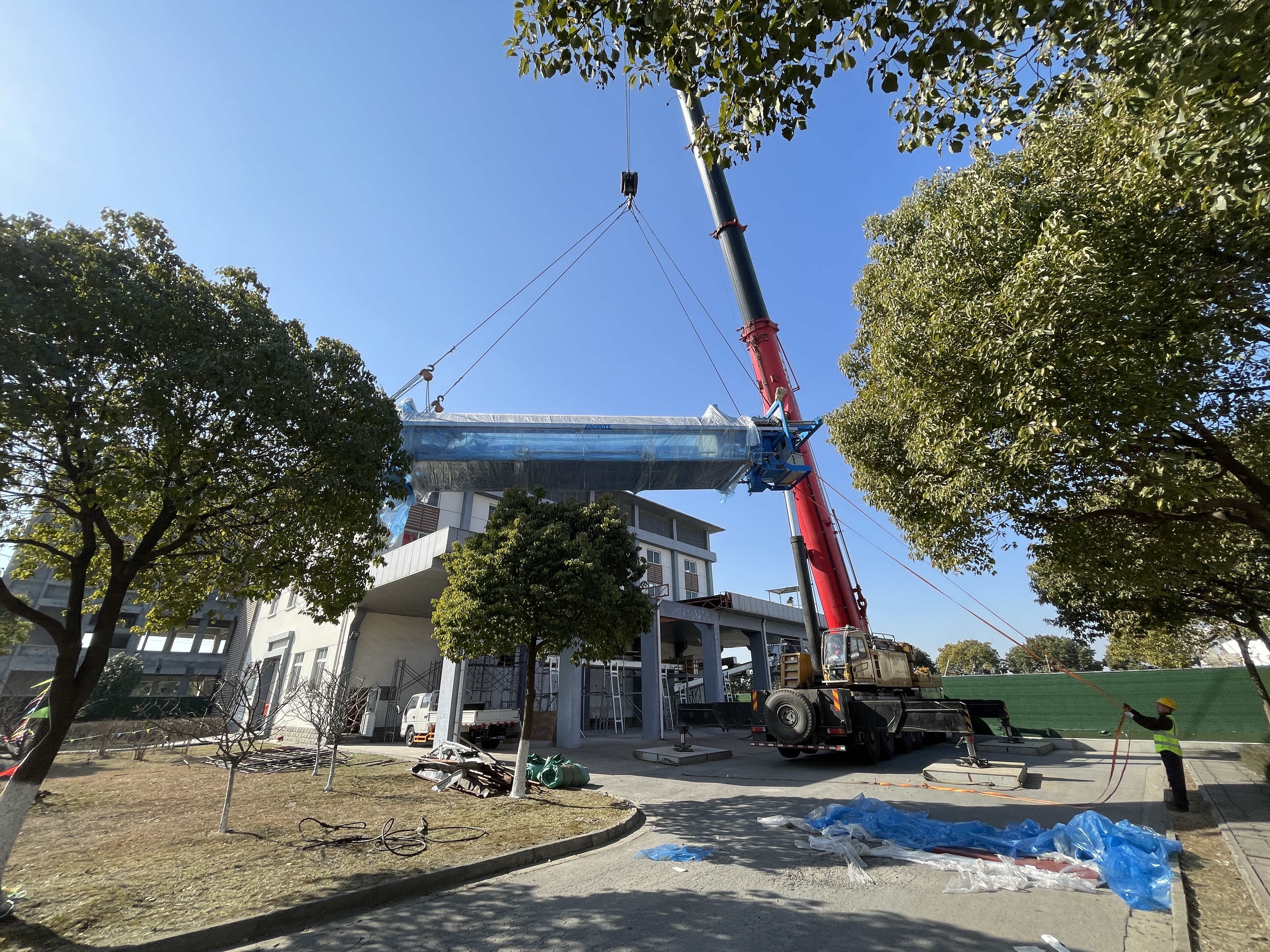 為此,相城水廠、二期項(xiàng)目組和施工單位就板框機(jī)的吊裝工程展開了多次交流討論。所有工作人員通過資料收集、實(shí)地探討等方式制定了詳細(xì)的施工方案,并就方案細(xì)節(jié)、安全施工流程、現(xiàn)場人員安排等細(xì)節(jié)進(jìn)行完善和確認(rèn)。