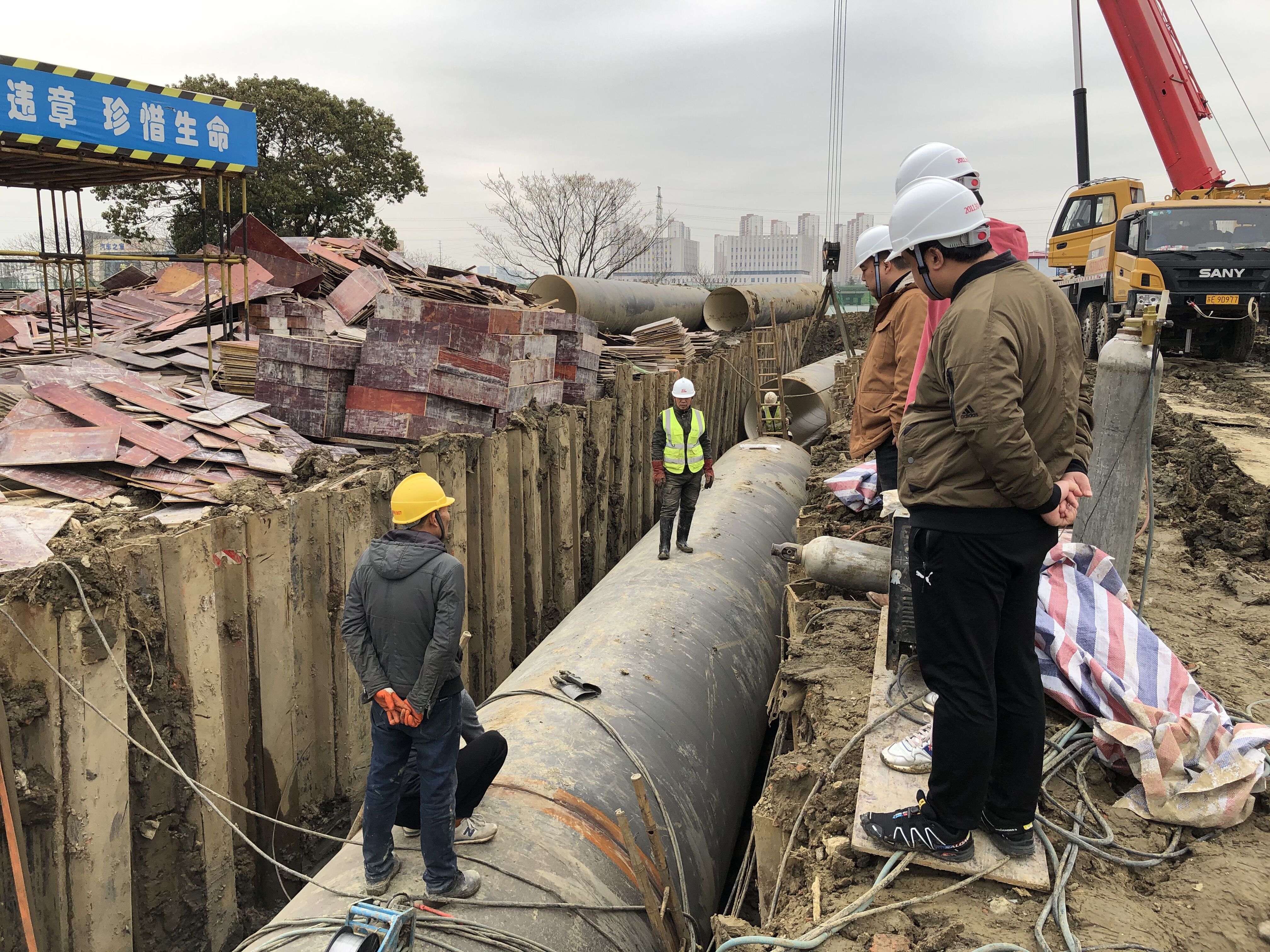 本次培訓項目由現(xiàn)場的建龍監(jiān)理焦總監(jiān)負責,培訓主要分為工地現(xiàn)場講解和理論培訓兩個環(huán)節(jié)。首先,大家在現(xiàn)場觀看學習了DN2000渾水管溝槽開挖的拉伸鋼板樁支護及DN2000鋼管的焊接技術,一起參觀了水廠在建提升泵房,通過現(xiàn)場環(huán)節(jié)提升了實際認知。隨后,焦總監(jiān)為大家講授了管道安全施工、質(zhì)量控制等理論細節(jié),鞏固了培訓成果。