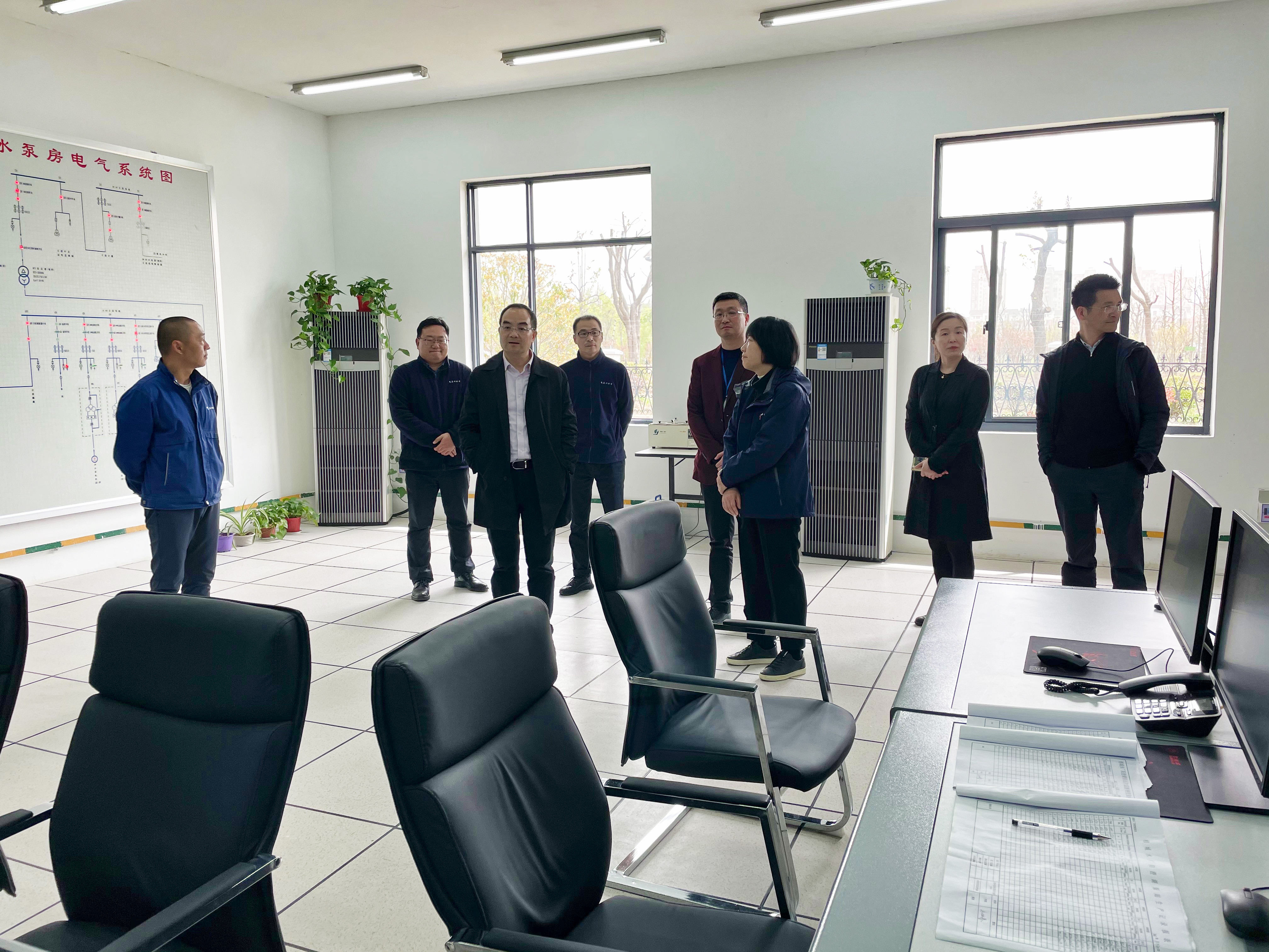 徐董一行先后檢查了泵站應急投加裝置、泵房中控室、水質儀表間等現場部位;重點了解了設備設施、危化品存儲使用及應急物資配置情況;對泵站建設、試運行、自控調試、水源水質及職工當班進行了詳細了解。徐國忠董事長對陽澄湖泵站當前運行管理情況表示肯定,要求公司持續關注陽澄湖原水水質情況、加強分析比對,為雙水源供水積累豐富的生產經驗。同時要加快推進泵站建設掃尾工作,及時查漏補缺,助力迎峰度夏;市自來水公司要進一步對標“無人化”值守要求,加強自控優化,以高標準、有特色、顯亮點為目標高效推進工作。