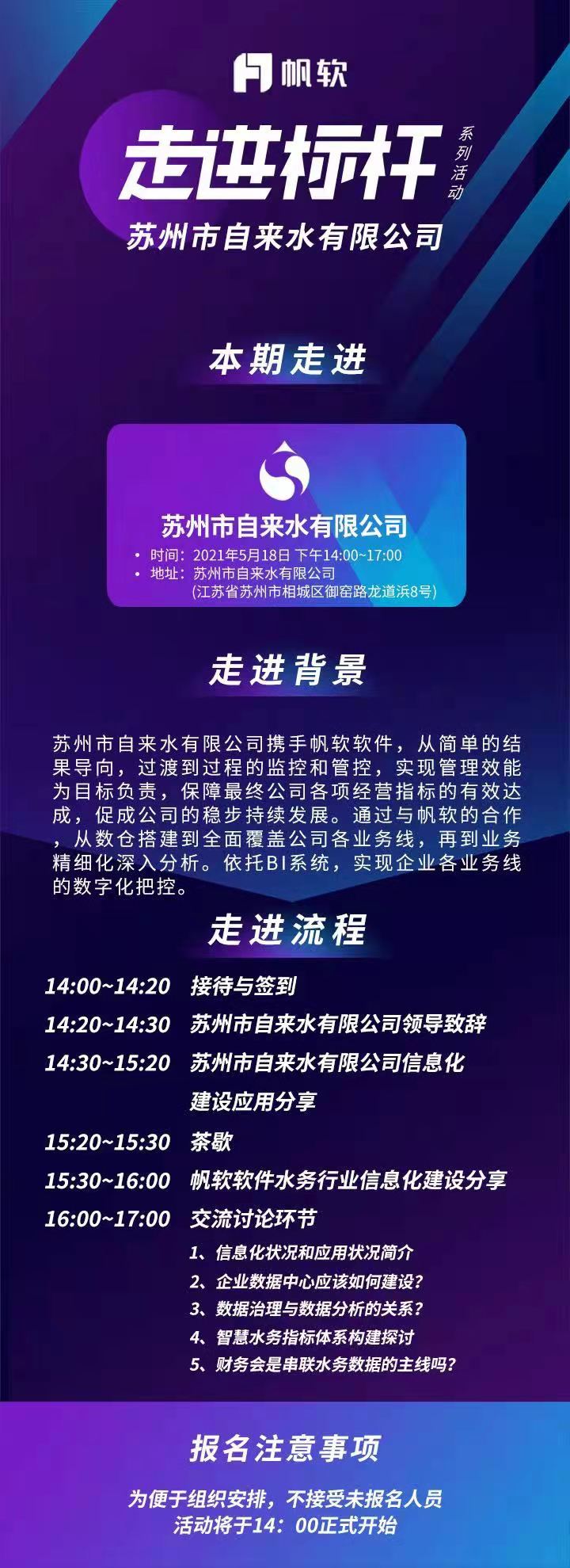 為了更好的拓寬企業數字化轉型思路,近期,市自來水公司信息處應周邊多家水司信息部門邀請負責組織開展一場以供水行業信息化為主題的沙龍活動。通過周密籌備,主題沙龍活動于5月18日下午在公司順利舉辦。活動由公司信息處與帆軟公司聯合主持,江南水務、常州江河港武水務、蘇州新區自來水等公司信息技術代表參加。主題沙龍包含三個環節:蘇州市自來水有限公司分享企業信息化的現狀與智慧水務建設思路;帆軟公司介紹帆軟軟件在水務行業的應用案例;各與會水司代表圍繞信息化應用現狀、企業數據中心建設、數據治理與數據分析等大家關心的五個熱點話題展開交流討論。會上大家暢所欲言,直面水務信息化建設的痛點與難點,分享了各自信息化建設的經驗與思路。