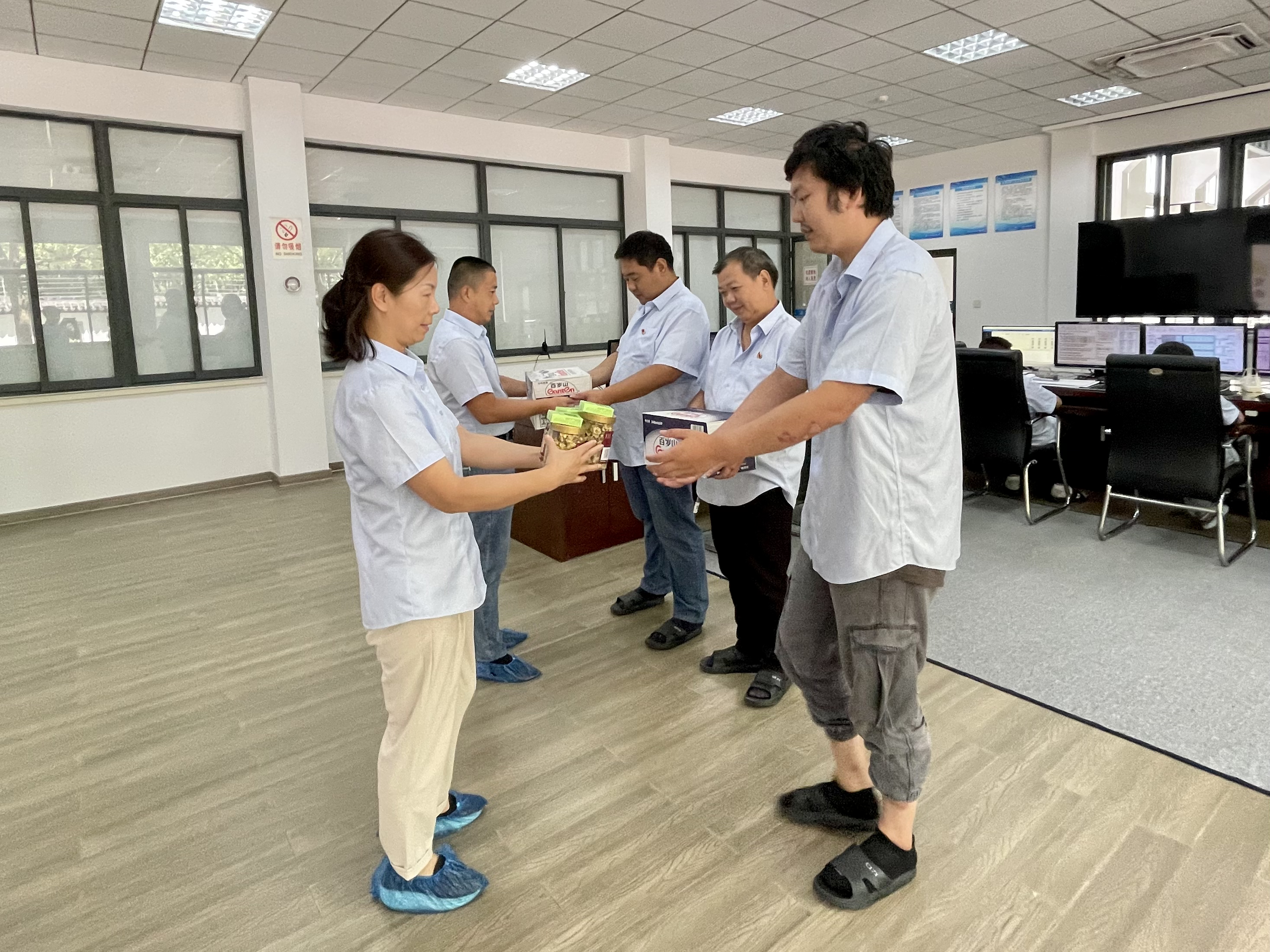 目前正值盛夏,天氣炎熱潮濕,為表達(dá)對(duì)一線職工們的慰問和關(guān)懷,市自來水公司胥江水廠、相城水廠與白洋灣水廠分工會(huì)采購了礦泉水、菊花茶、風(fēng)油精、人丹等防暑物資,親手送到生產(chǎn)一線職工和外包人員的手中。