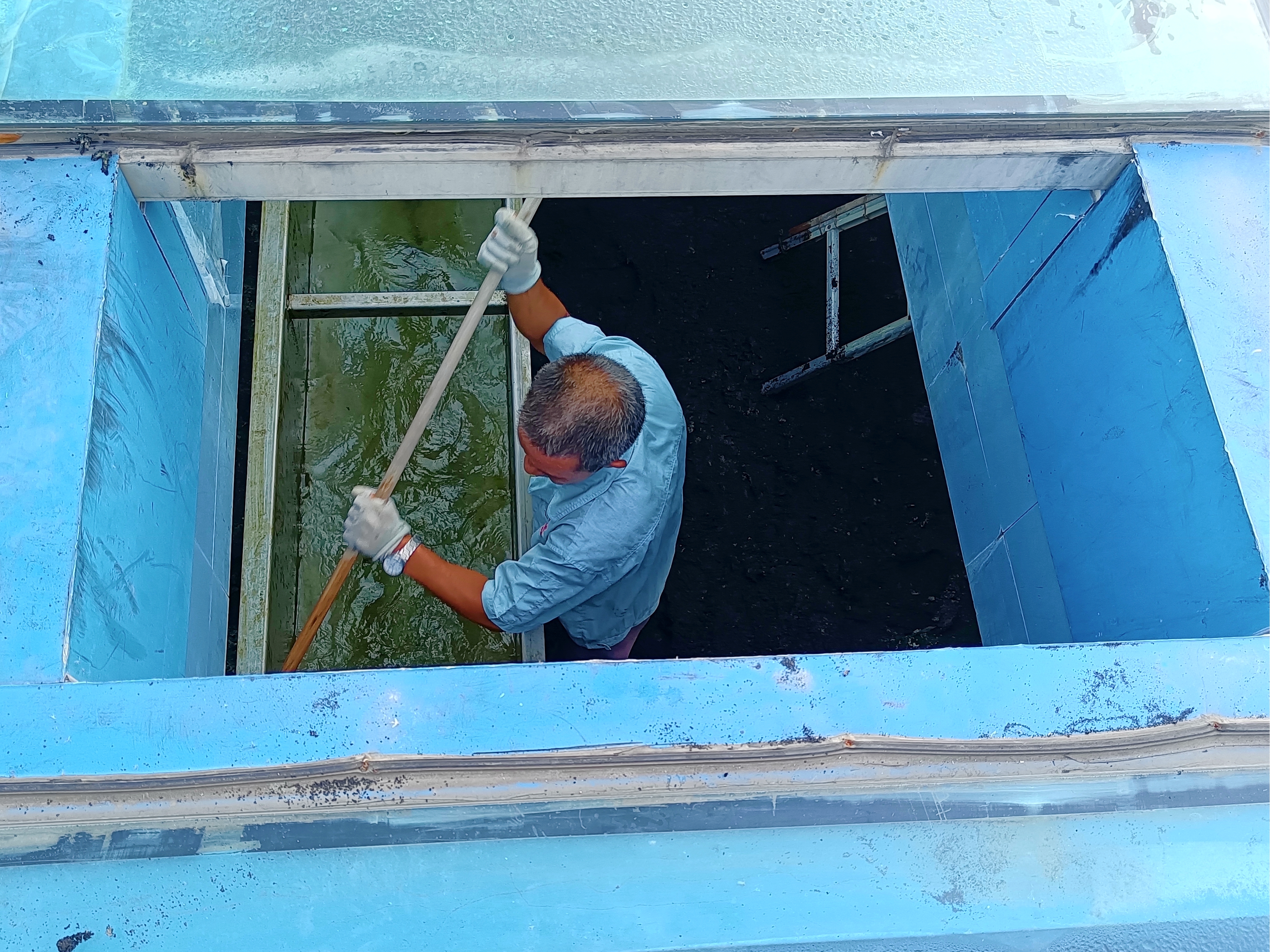 夏季光照強烈,沉淀池、炭濾池等構筑物池壁易滋生青苔,不僅影響池內觀感,還有可能會對工藝出水水質造成一定影響。7月初,胥江水廠按計劃對各組沉淀池、炭濾池等構筑物池壁、給水槽進行沖刷清潔;炭濾池清洗過程中,清洗人員嚴格落實各項安全防護措施,提前停加臭氧、做好通風處理,清洗結束后立即進行反沖洗,及時將雜質排除,并對沖洗尾水進行細致的水質檢測,全面核驗清潔效果,確保濾池出水水質符合公司內控標準。