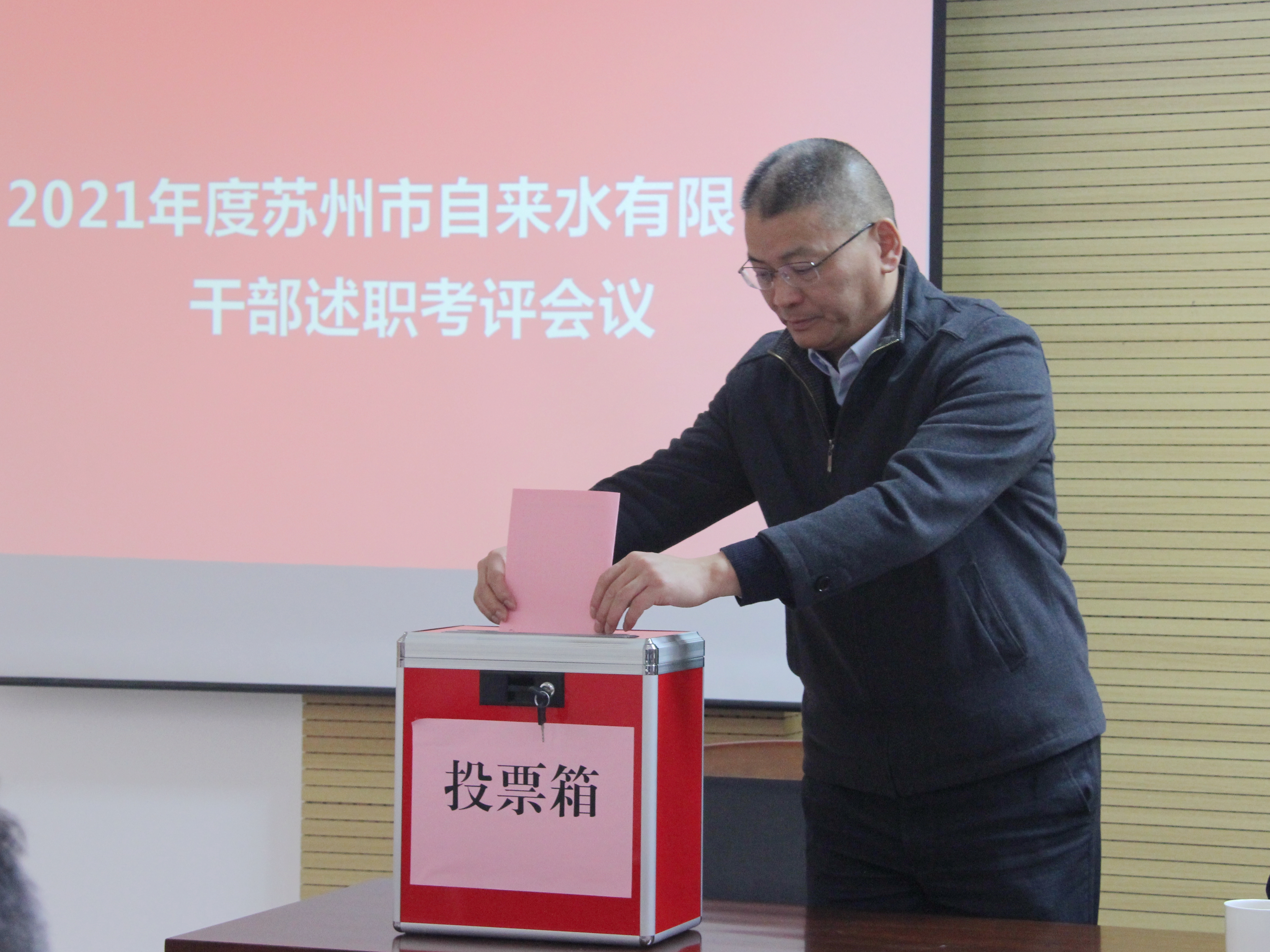 會上,公司黨委書記、董事長孫林忠同志代表公司黨委作“2021年度領導班子述職考核工作報告”,就公司在“嚴格落實全面從嚴治黨要求、扎實推進企業改革發展”等方面的工作全面通報。隨后,孫林忠同志作“個人述職述廉述意”工作報告,其他班子成員“述職述廉述意工作報告”以文件形式傳閱。參會人員根據領導班子個人履職及廉潔從業情況認真填寫《蘇州市自來水有限公司2021年度領導班子考核測評表》和《黨風廉政建設責任制落實情況民主測評表》,現場進行無記名測評。