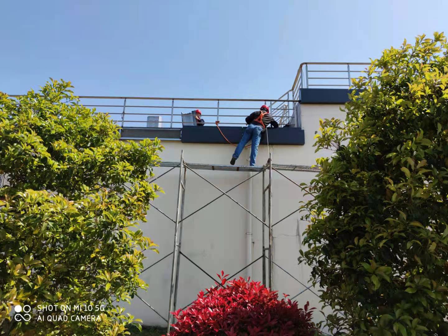 從實用性出發:廠區“構筑物沿邊改造”以炭濾池為試點,從構筑物外觀著手,利用新材料包邊的施工方式解決了構筑物沿邊因粉刷造成的不同程度的脫落、反復修補等問題,同時利用樓梯下方閑置空間搭建可以存放日常保潔工具的儲物間,周邊環境達到了整潔、美觀的效果。
