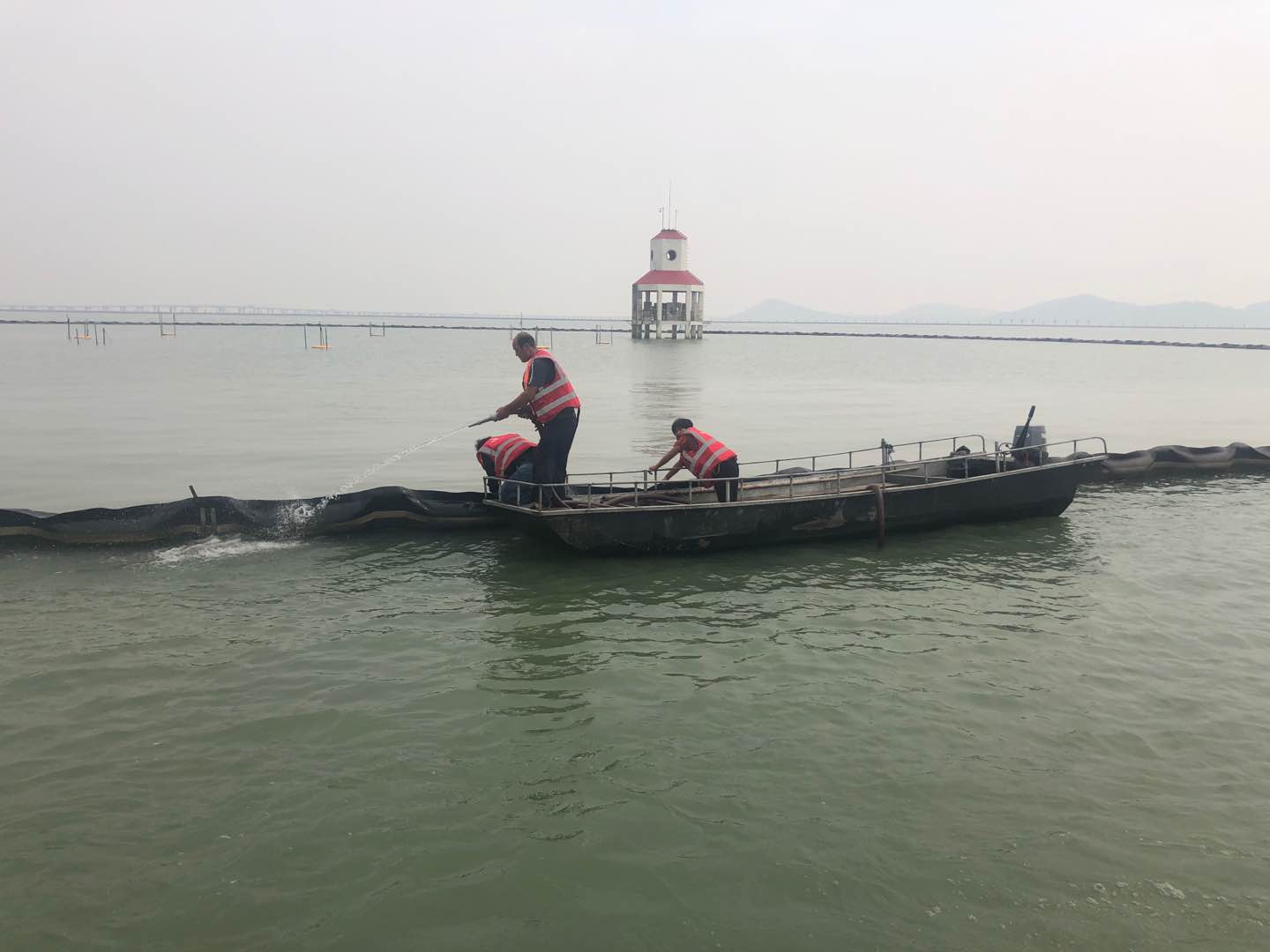 村企聯建,共筑水源地生態屏障。一年多來,市自來水公司先后投入近80萬元,調試安裝水源地噴淋系統、曝氣系統、推流系統等多項防藻設備,指導作業人員在高藻期開展了多輪藍藻應急精準打撈,有效防止藻類在保護區內聚集。東蔡村項目人員定期對防藻圍欄提供高效的檢查清洗,提升除藻效果。合作以來,保護行動累計出動船只700余次,投入人員1400余人次,在雙方協作配合和共同努力下,漁洋山水源地一級保護區水源水質持續保持平穩優質,為守好“水質安全第一關”奠定了堅實基礎。