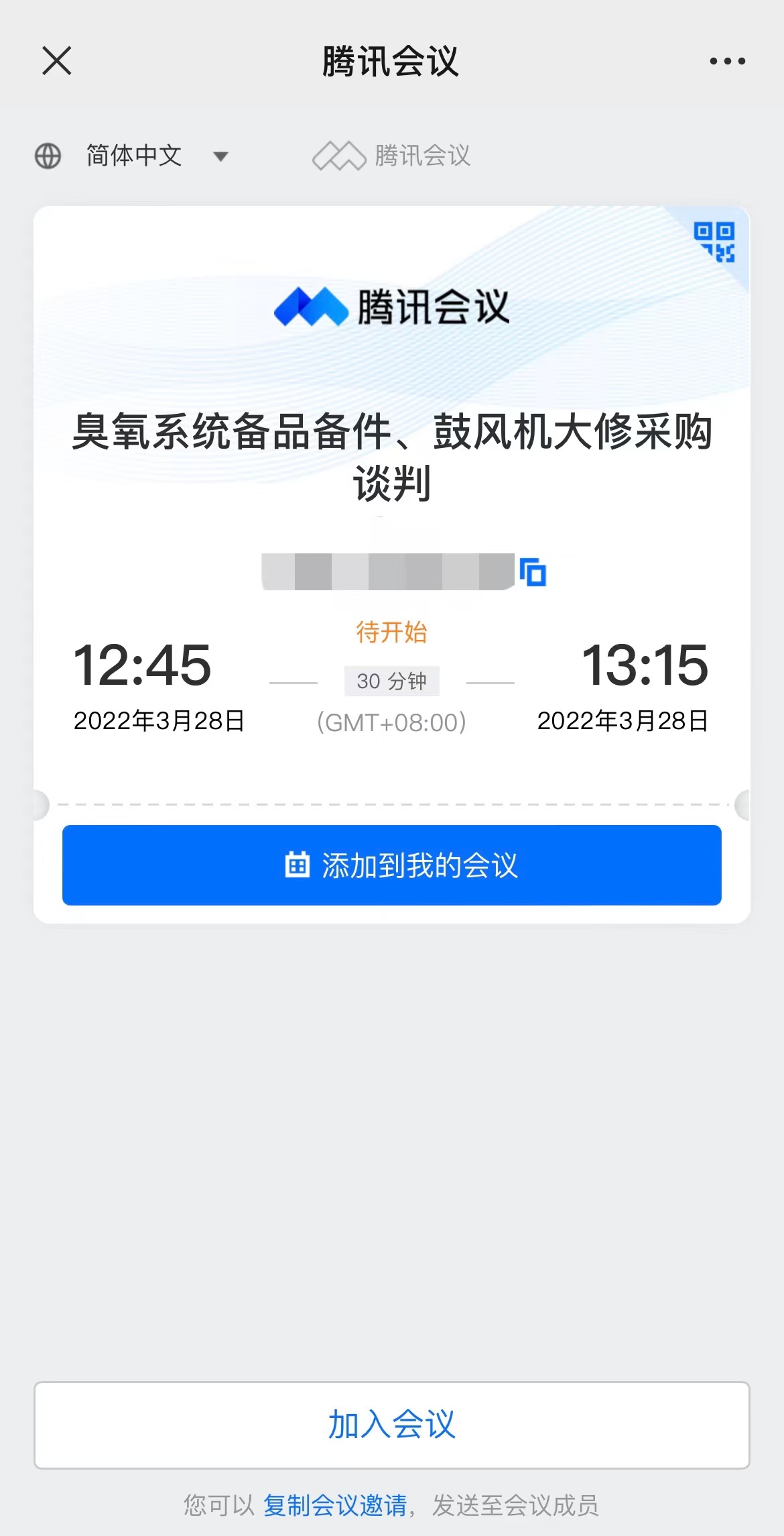 3月28日,“臭氧系統備品備件采購”“鼓風機大修”等單一來源項目在公司208開標室遠程競談,通過網絡會議,采購方代表、評審委員與上海等地供應商就服務標準、投標價格等內容進行了線上交流與談判,并最終達成一致意見,確定成交價格。