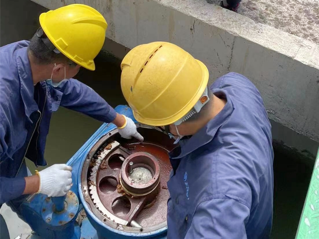 閥門的周期性、預防性維保是保證供水設施正常運行的一項重要工作。水廠涉及工藝管路閥門較多,一旦出現故障,將直接關系到水質工藝處理,甚至影響水質安全。為此,白洋灣水廠結合實際情況,制定了各區域管路閥門的周期維保計劃,做到水廠閥門體檢全覆蓋。今年該項工作已于四月底全面啟動,水廠先后完成了沉淀池全部96個排泥角閥、132個DN200手動閘閥、8個DN1400進出水手動蝶閥、自用水管5個DN300手動蝶閥、排泥水調節池1個DN400排水手動閘閥相關部位的全部維護保養工作,重點對閥門的附屬管路、汽水分離器、氣路分配箱、蝸輪箱、傳動齒輪、渦輪蝸桿等部件進行檢查、清理和維護保養。