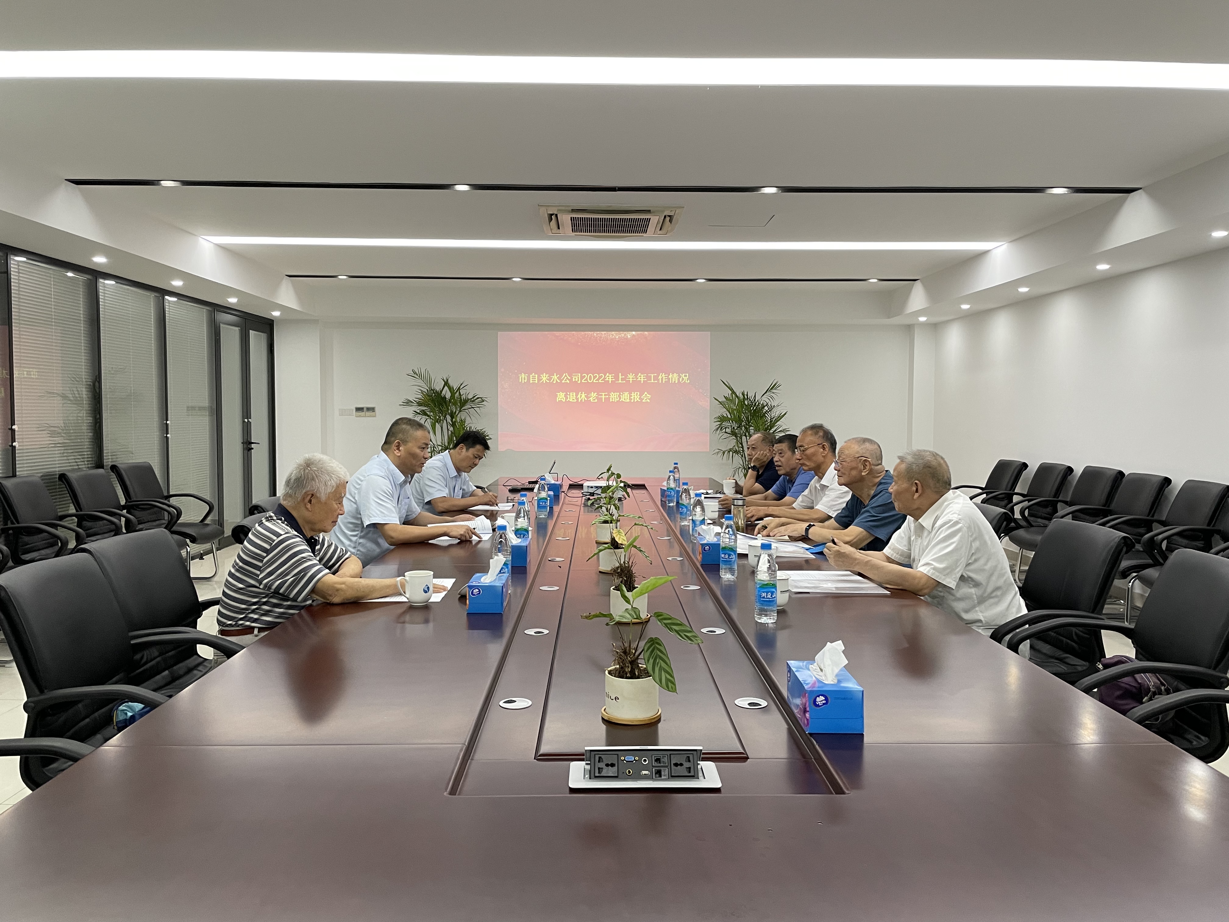 7月21日,市自來水公司召開離退休老干部半年度通報會議,公司黨委書記、董事長孫林忠和黨委委員、紀委書記、工會主席夏亞軍出席會議,與老干部代表共聚一堂,共同探討公司改革和加強支部建設等問題。