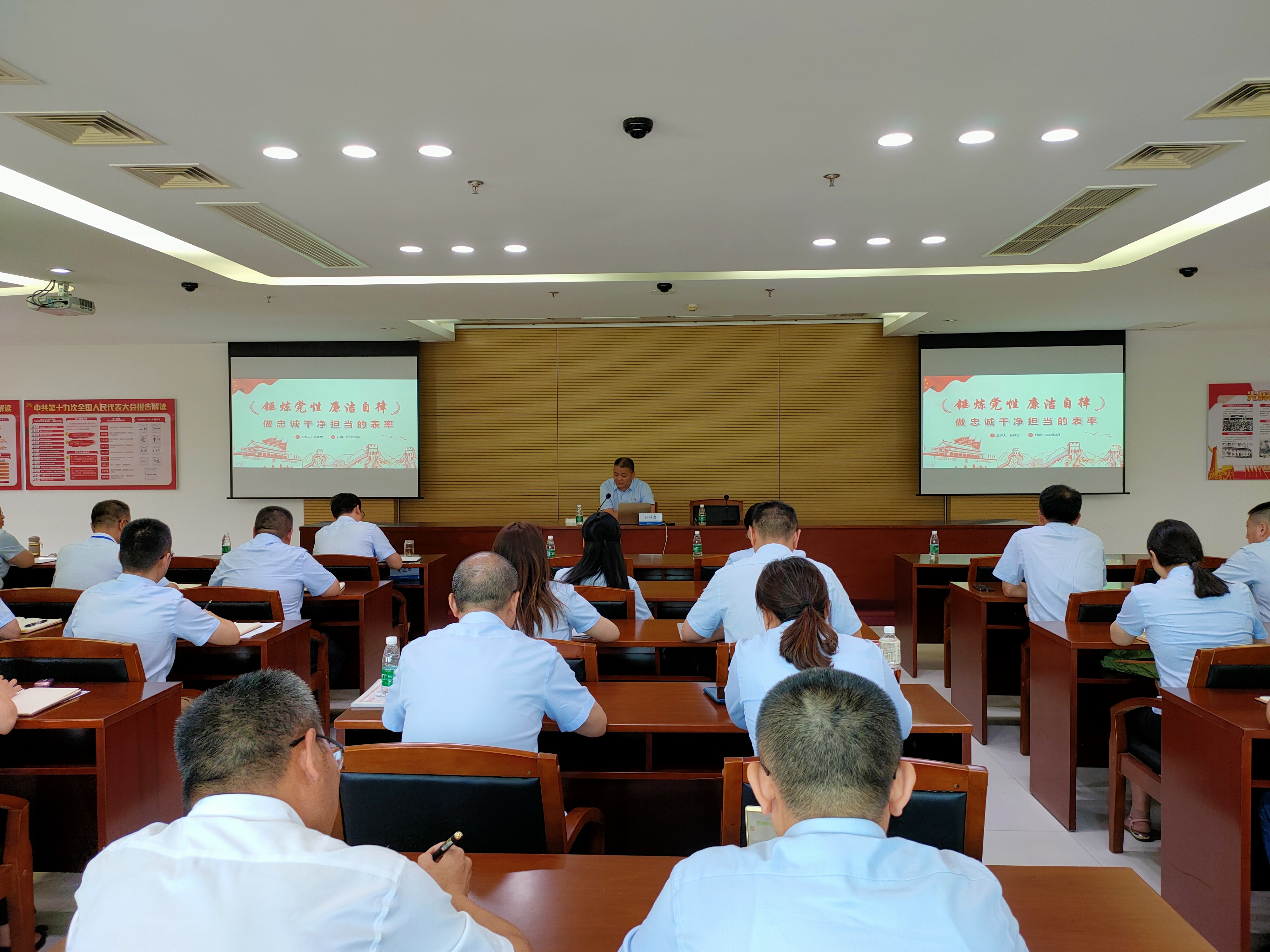 為加強(qiáng)黨風(fēng)廉政建設(shè),樹牢干部職工的責(zé)任意識、底線意識和紀(jì)律意識,8月10日下午,公司黨委書記、董事長孫林忠以“錘煉黨性廉潔自律,做忠誠干凈擔(dān)當(dāng)?shù)谋砺省睘轭}給公司全體黨員干部上了一堂精彩的廉政黨課。公司領(lǐng)導(dǎo)班子成員、全體中層領(lǐng)導(dǎo)干部、各黨支部紀(jì)檢委員等近40人參加。