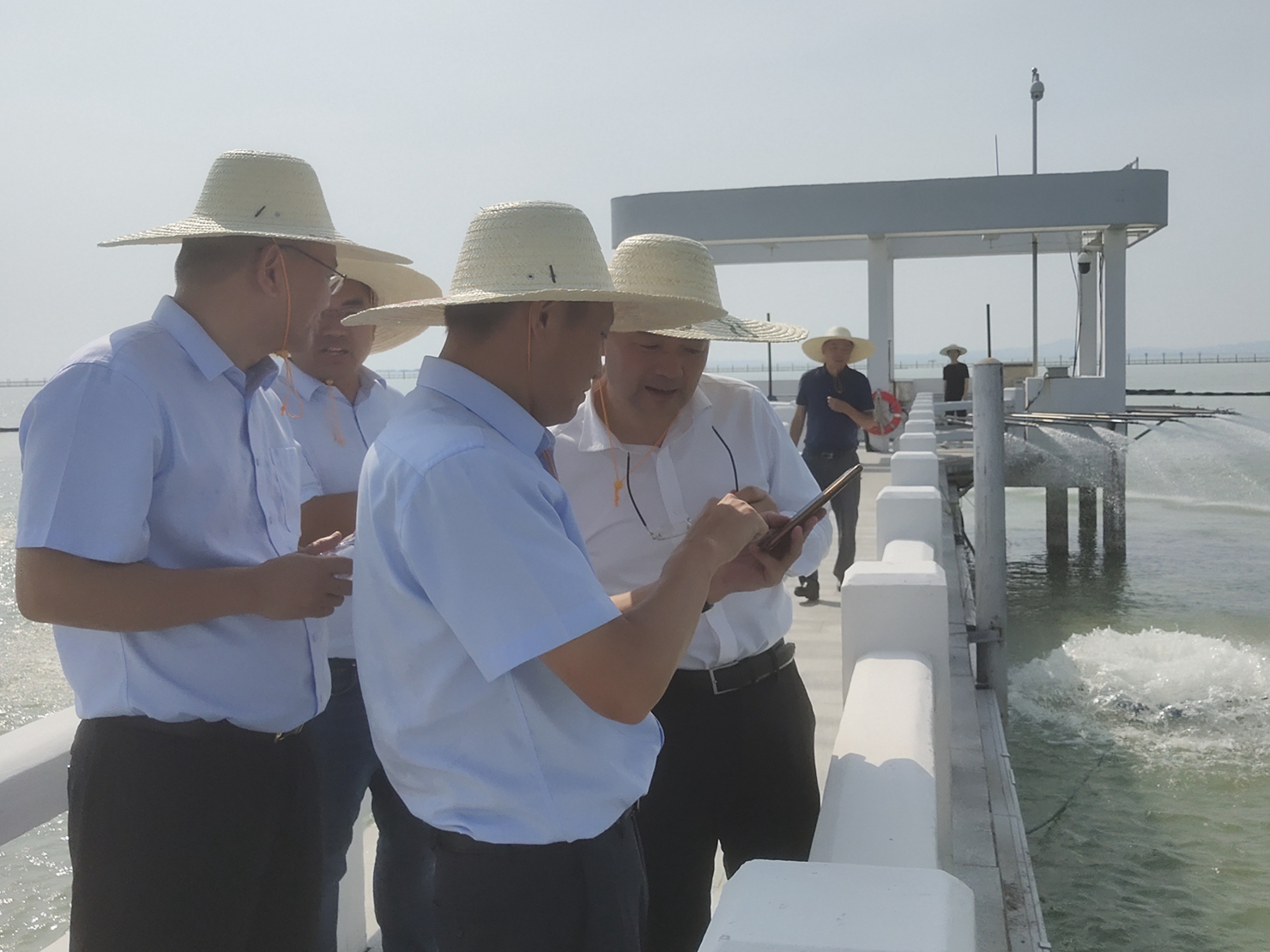 徐國忠董事長先后來到兩個水源地現場,實地查看并聽取了市自來水公司藍藻防控和安全供水情況工作匯報,現場詢問了水源水質、藍藻防控、巡查打撈、應急物資儲備及應急處置等情況。