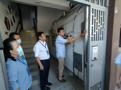 在新元二村,考察組現場聽取了市自來水公司關于高品質入戶供水管道改造和水表智能化升級工作的落實情況匯報,詳細了解了新村內部已完成的小區地埋進戶管、不銹鋼立管改造及物聯網遠傳水表改造現狀,并積極探討了改造建設期間遇到的困難和下一步工程推進計劃。