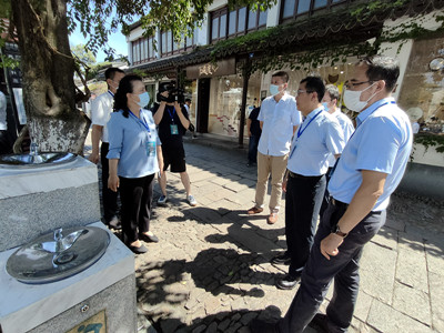 在平江路歷史街道,考察組實地查看了由市自來水公司維護的直飲水裝置使用現狀。目前,每套直飲水設備配置兩個噴嘴式飲水龍頭,設備內采用“一層pp棉、兩層活性炭預處理、反滲透膜、紫外消毒、活性炭后處理”五道工藝,確保凈水效果安全、優質。王副主席贊譽道:“將直飲水布置在城市景觀點可極大限度地滿足市民飲水需求,在提高城市公共服務能力的同時,還可有效減少各類包裝瓶引起的環境污染問題,可謂一舉多得。”