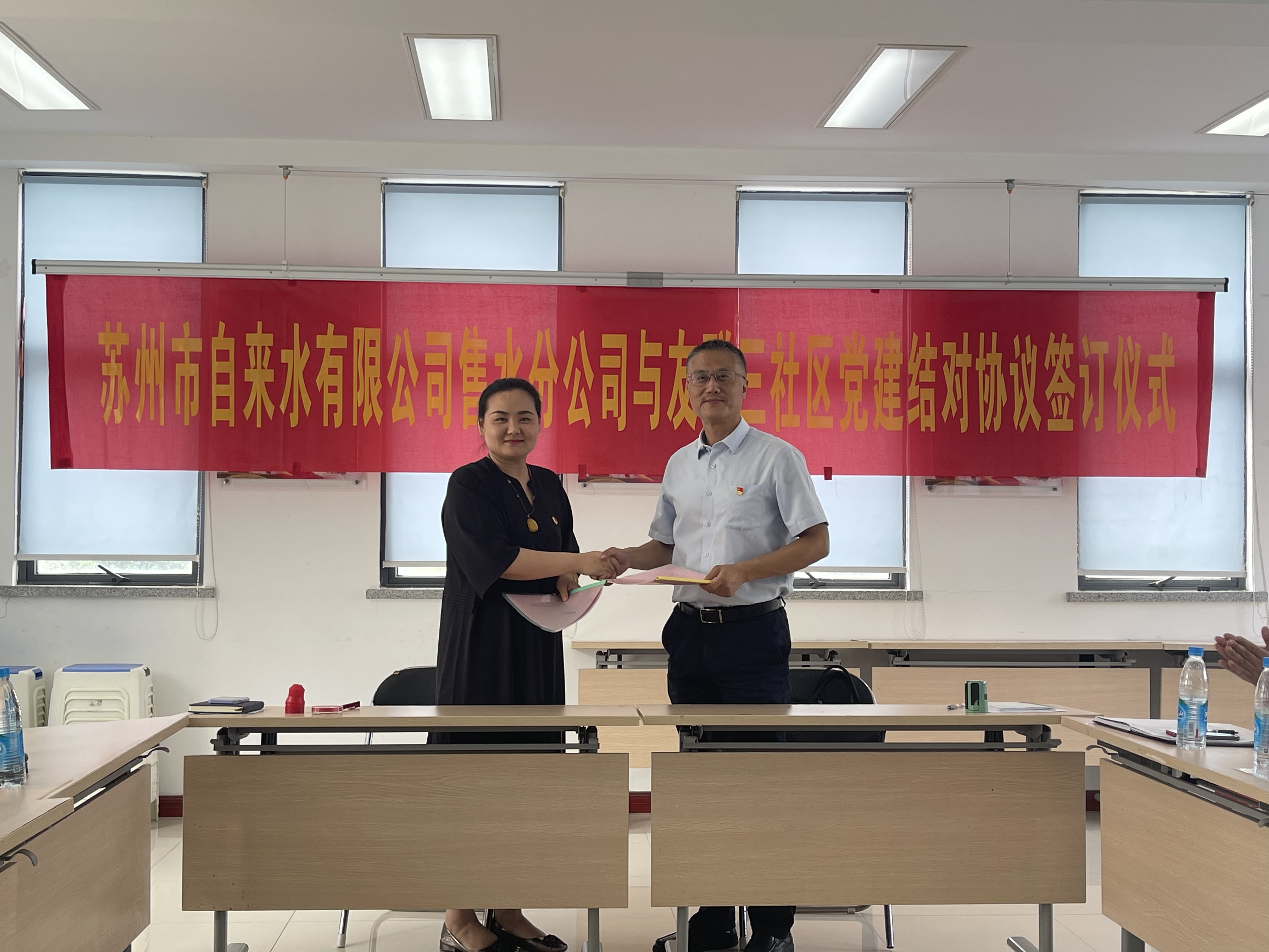 售水分公司黨支部積極與吳門橋街道友聯三社區開展結對共建,探索“蘇水惠民,精準服務”的有效路徑,讓共建黨員成為與社區居民溝通聯系的橋梁,積極打造以“黨建+服務”的“供水終端精準服務保障體系”。