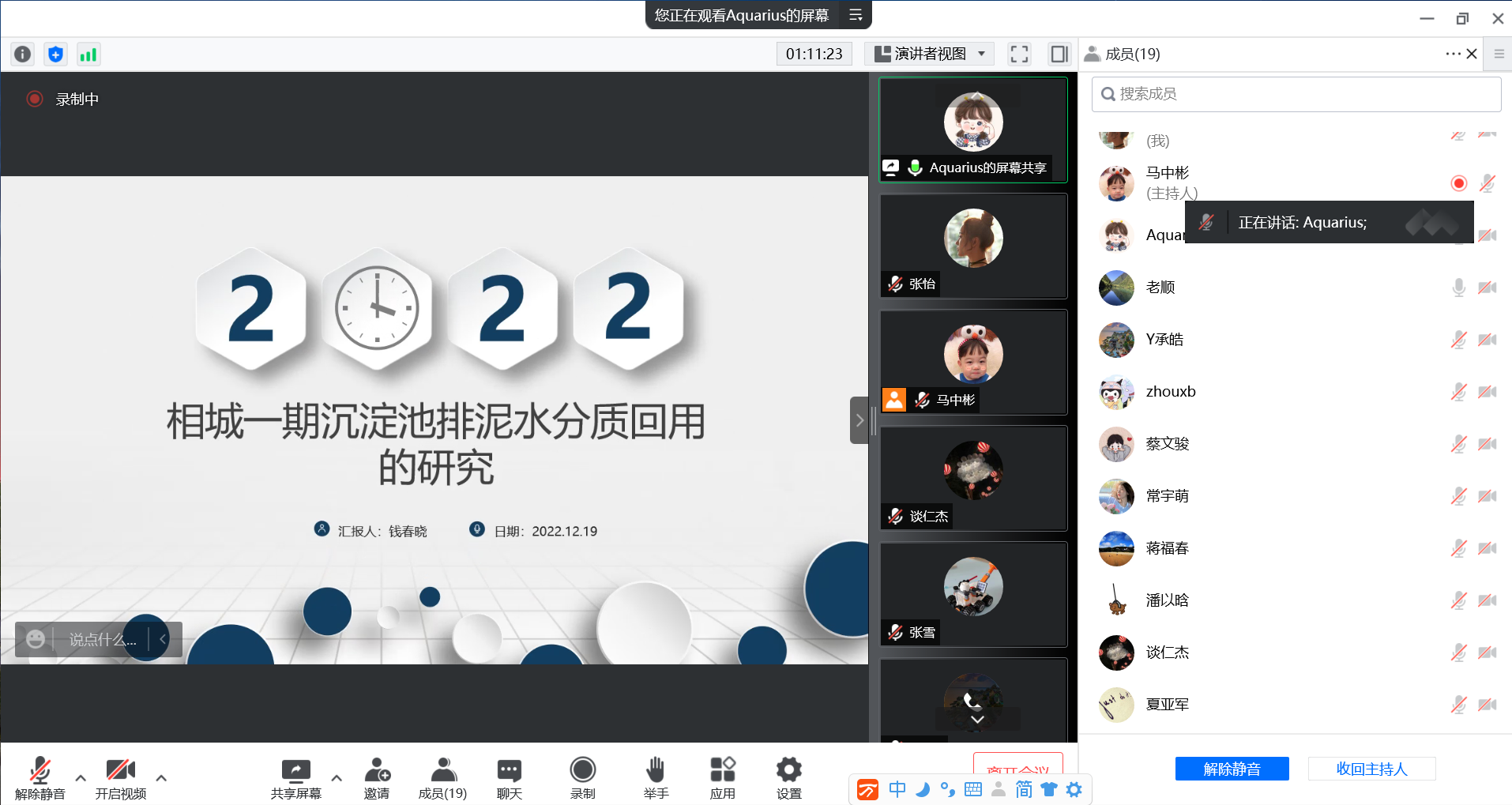 會上,“蘇水青年工作室”的5位代表圍繞“基于水泵特性曲線的清渾水機泵優(yōu)化搭配方案研究”“噪聲記錄儀的優(yōu)化與實驗”“表井抄表蓋的優(yōu)化與設(shè)計”等5個課題一一匯報課題研究成果,展望明年課題研究項目。與會領(lǐng)導對團員青年們課題研究過程中敢于思考、勇于嘗試的精神予以肯定,并針對課題研究成果、下一步研究計劃,提出細致且有針對性的意見,讓課題組目標更明確,思路更清晰。