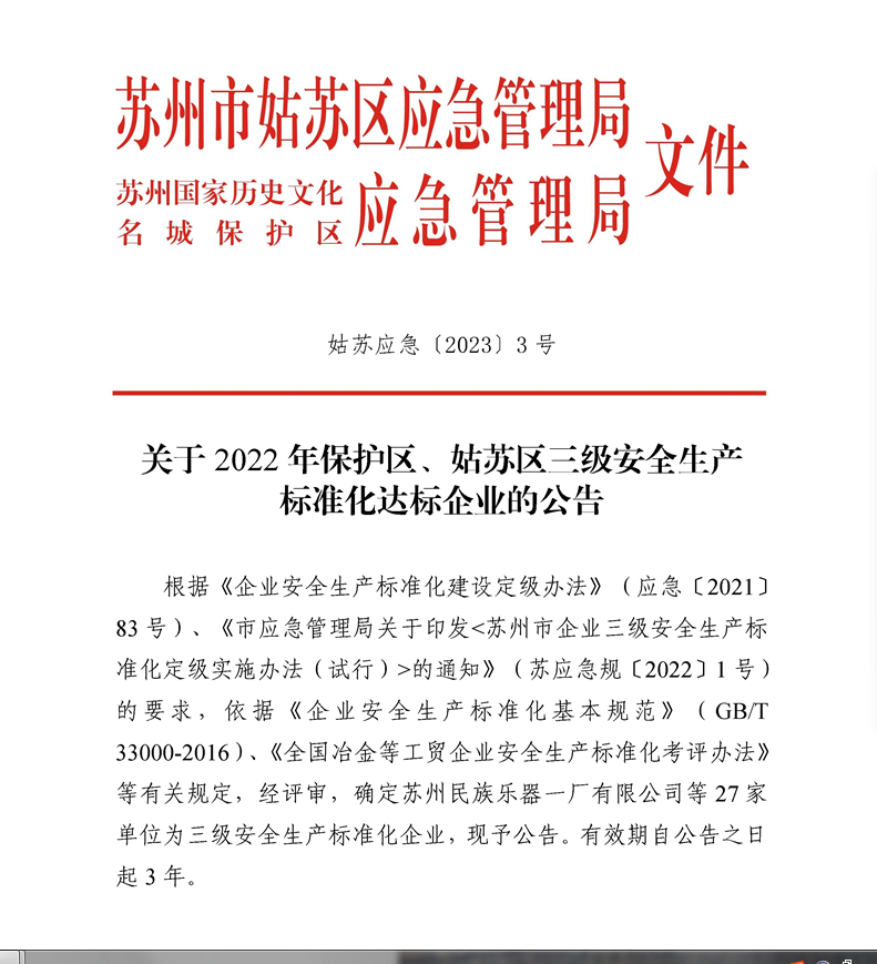 近日,蘇州市姑蘇區(qū)應(yīng)急管理局安全生產(chǎn)標(biāo)準(zhǔn)化專家評審組對表業(yè)公司開展了安全生產(chǎn)標(biāo)準(zhǔn)化現(xiàn)場評審工作,表業(yè)公司順利通過三級安全生產(chǎn)標(biāo)準(zhǔn)化現(xiàn)場評審。