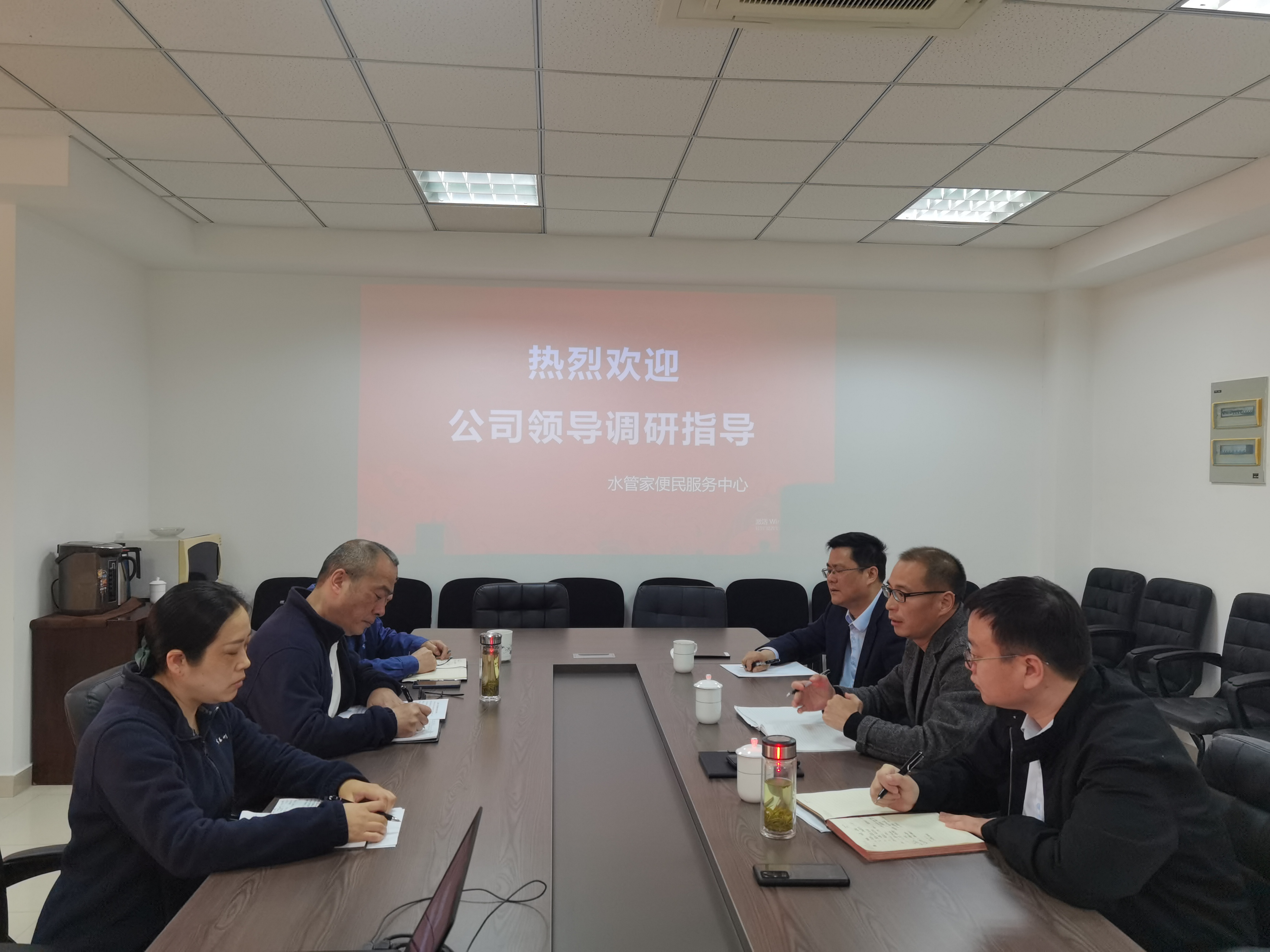 為進一步創新工作思路、提高服務效能,協同配合售水分公司做好供用水服務管理工作,4月12日上午,公司黨委副書記、副董事長、總經理錢勇,公司黨委委員、紀委書記、工會主席夏亞軍,公司黨委委員、總工程師紀永超赴水管家便民服務中心調研指導。