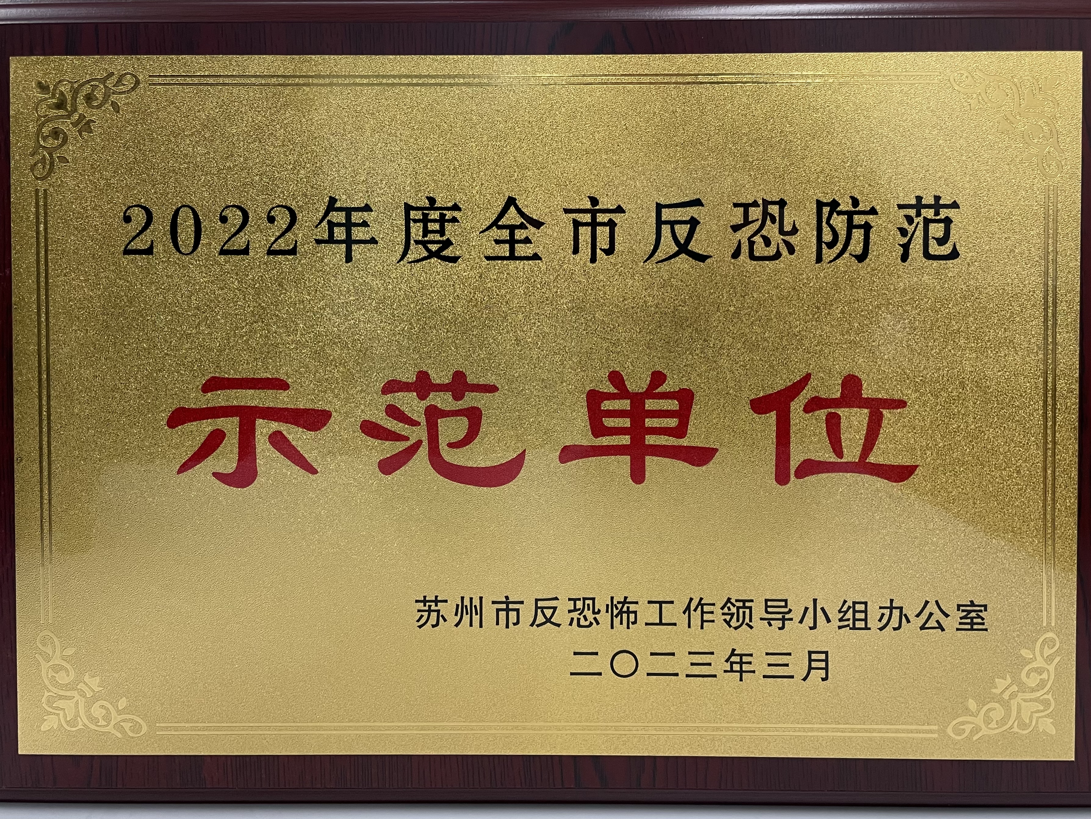 近日,公司被市反恐怖工作領導小組評為“2022年度全市反恐防范示范單位”。