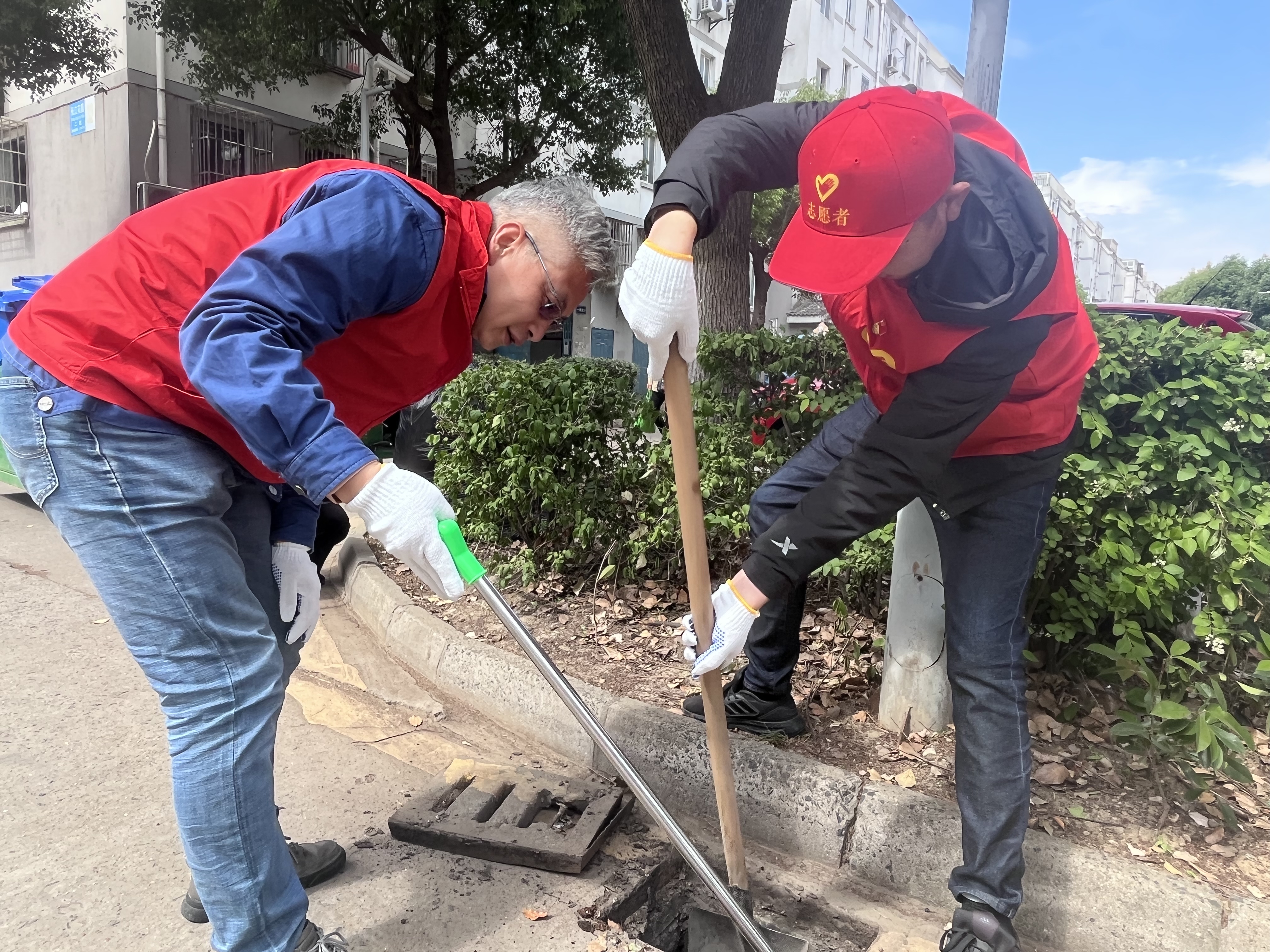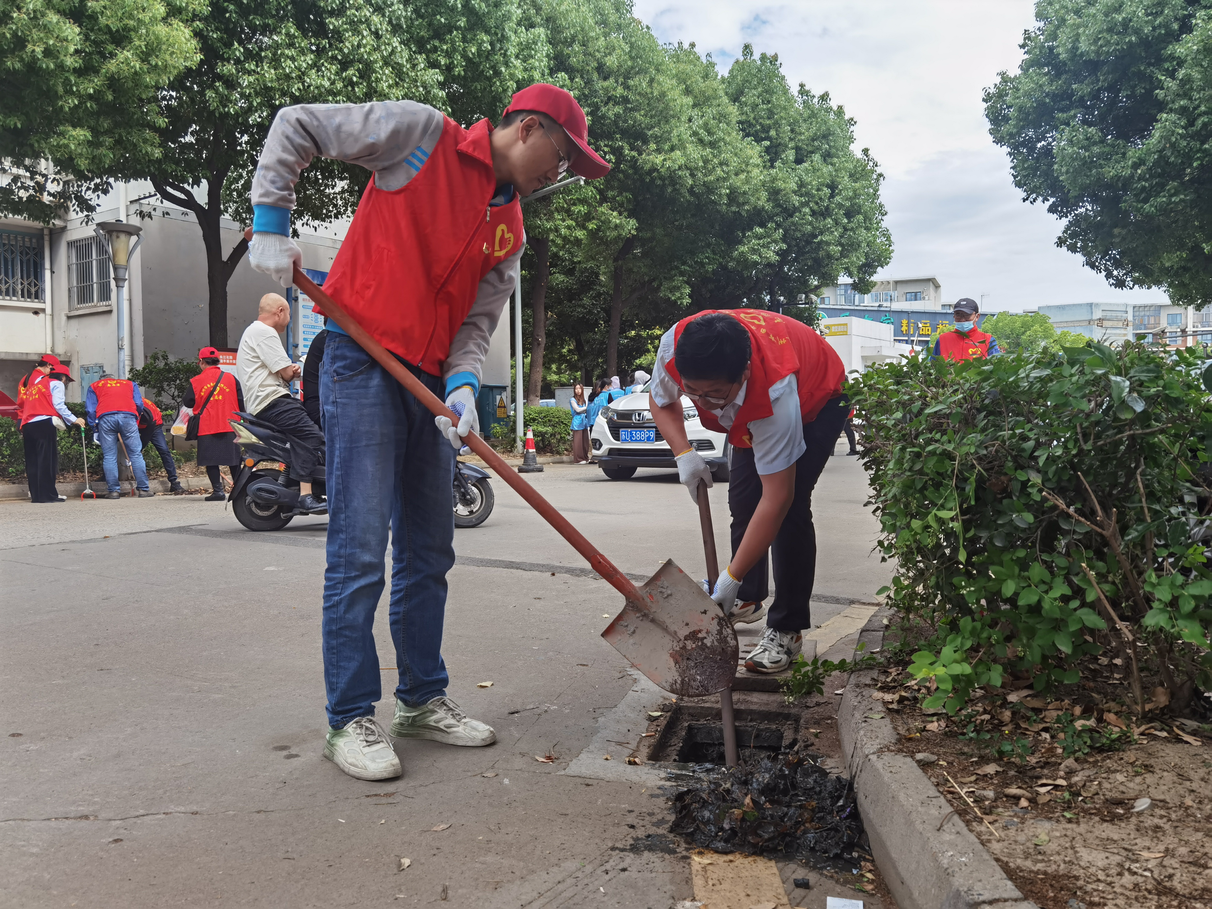 活動現場,志愿者們頭戴小紅帽,身穿紅馬甲,在社區同志帶領下,手持垃圾鉗、鏟子等衛生工具兵分兩路,一組協助物業對小區內污水井、下水道蓋板等進行清理、排查、整修等,提前做好防汛準備;另一組與社區網格員一起清理小區主干道、公共綠化區域等地的垃圾,并進行垃圾分類宣傳。黨員志愿者們充分發揮黨員先鋒模范帶頭作用,不怕臟,不怕累。經過大家的努力,路面、綠化區域變得干凈整潔,小區公共環境得到有效改善。