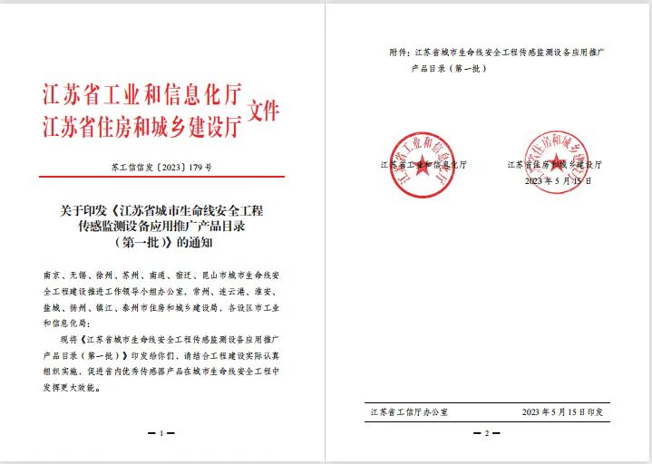 近日,江蘇省工業和信息化廳、江蘇省住房和城鄉建設廳對下發的《江蘇省城市生命線安全工程傳感監測設備應用推廣產品目錄(第一批)》文件進行了公示,表業公司共計有14款產品成功入圍。