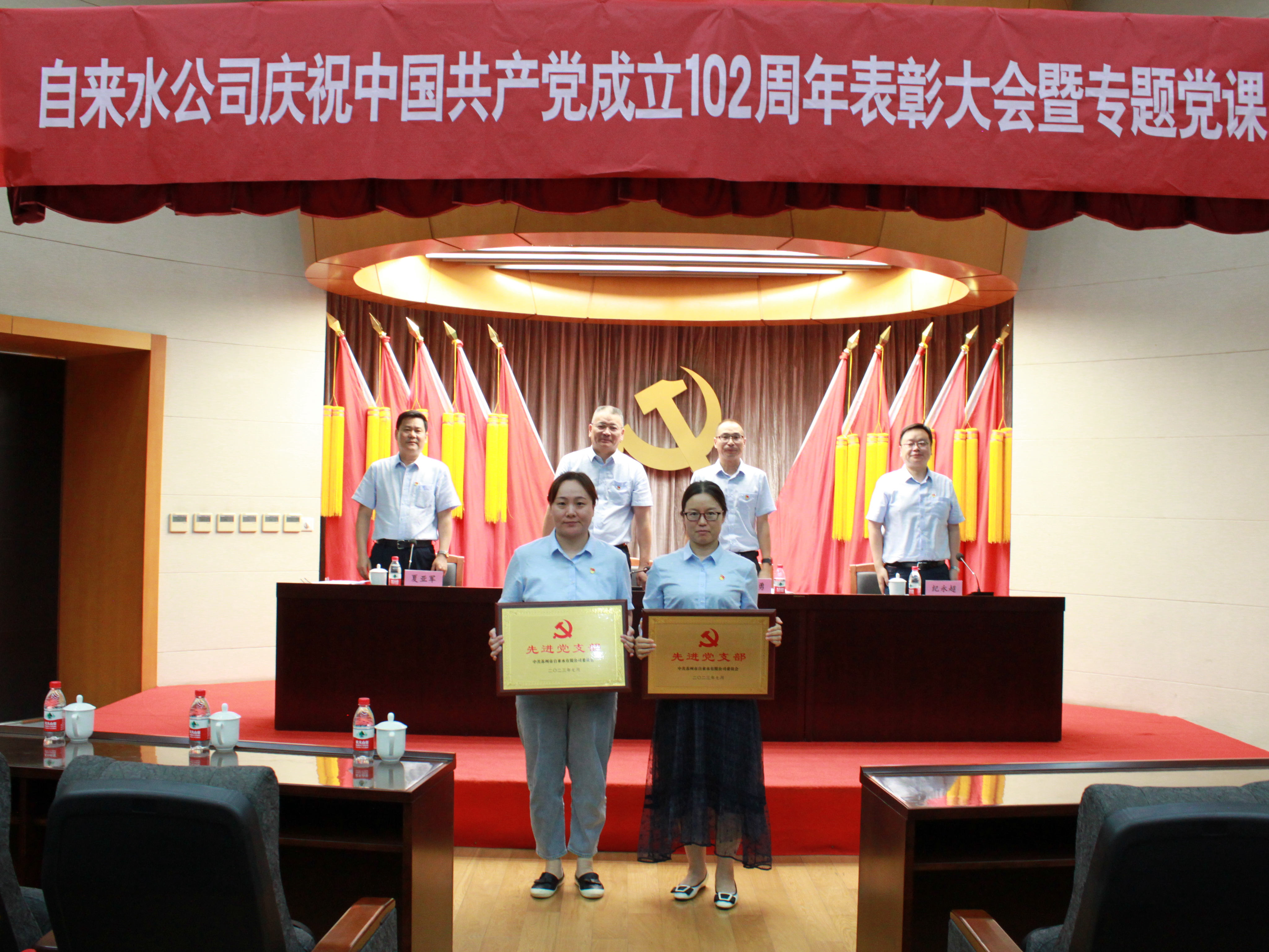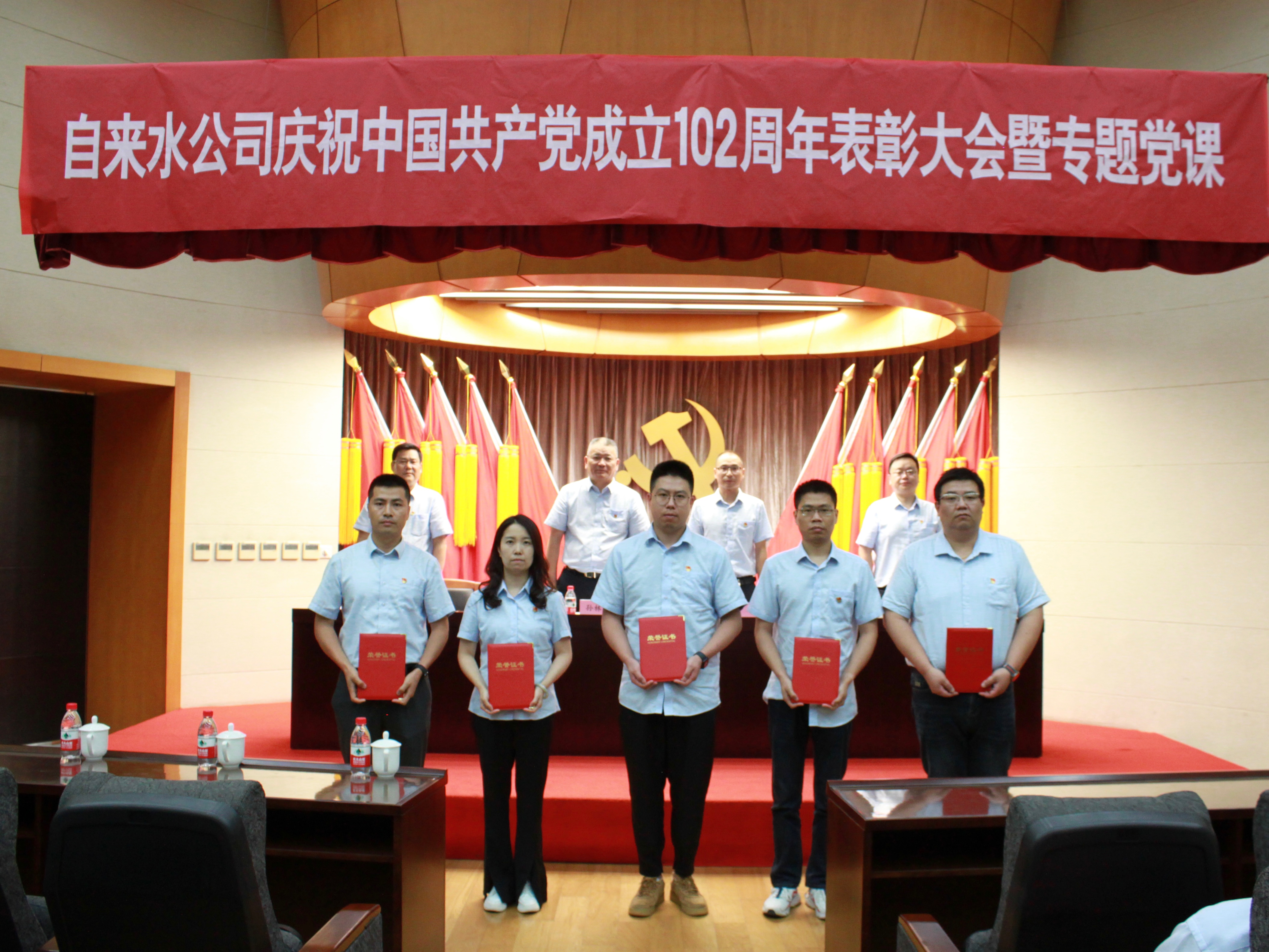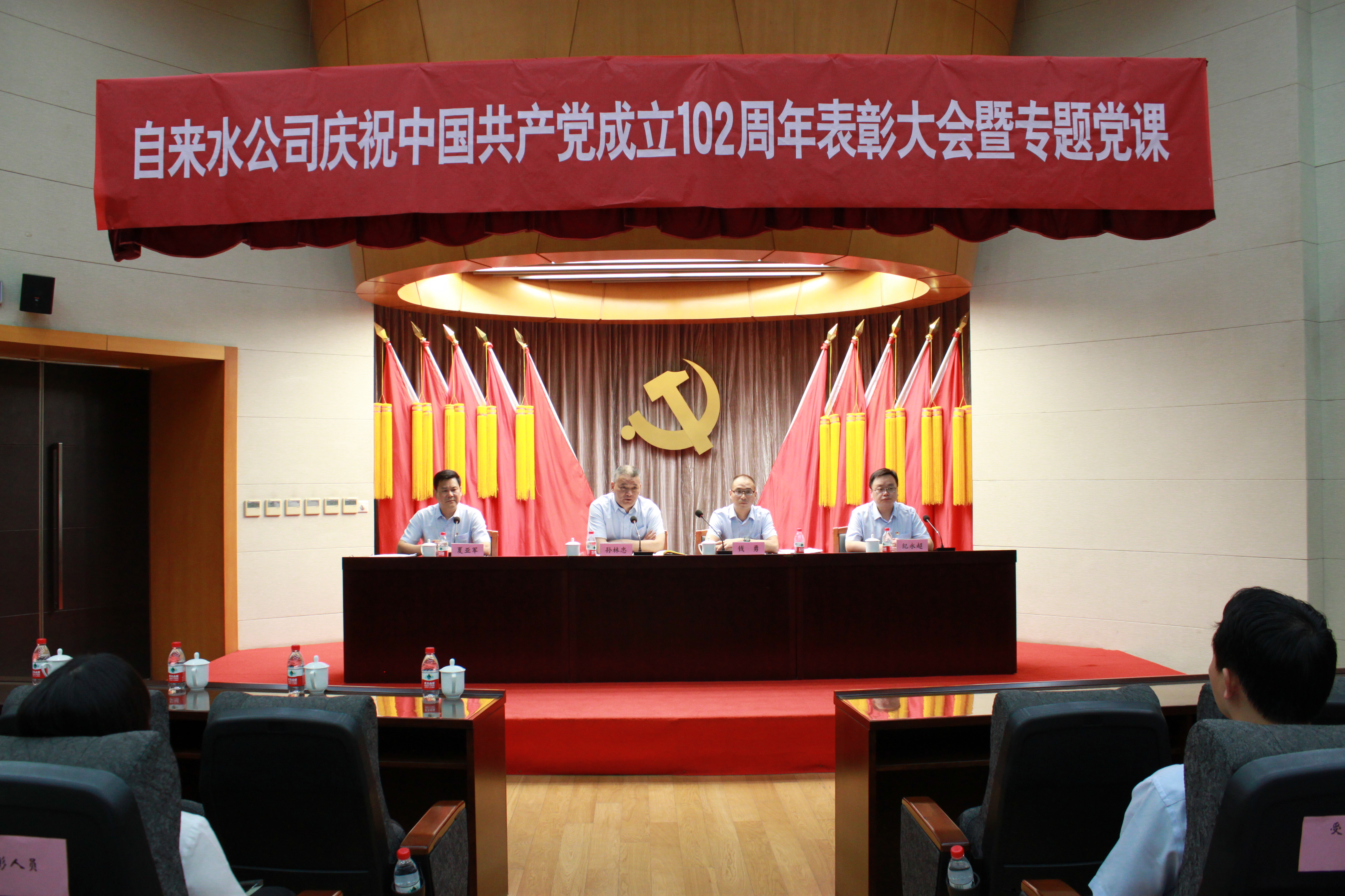 7月5日下午,市自來水公司召開慶祝建黨102周年主題大會暨專題黨課培訓,公司領導班子成員、全體中層干部、受表彰對象和優秀團員等120人參加大會。大會由公司黨委委員、紀委書記、工會主席夏亞軍同志主持。