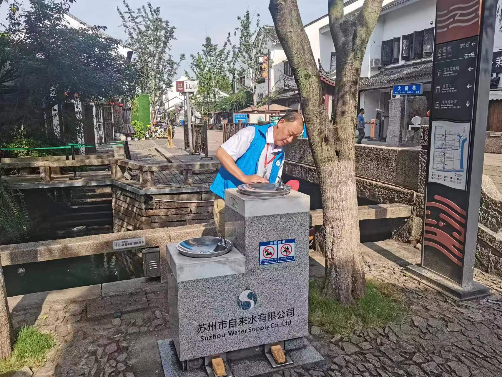 為了更好地打造好蘇城旅居環(huán)境,市政府2022年在姑蘇區(qū)歷史街區(qū)、公園景點、環(huán)城健身步道等人員密集區(qū)域建設(shè)了數(shù)十個直飲水點,公司水管家便民服務(wù)中心承擔(dān)日常運行維護的監(jiān)管工作。