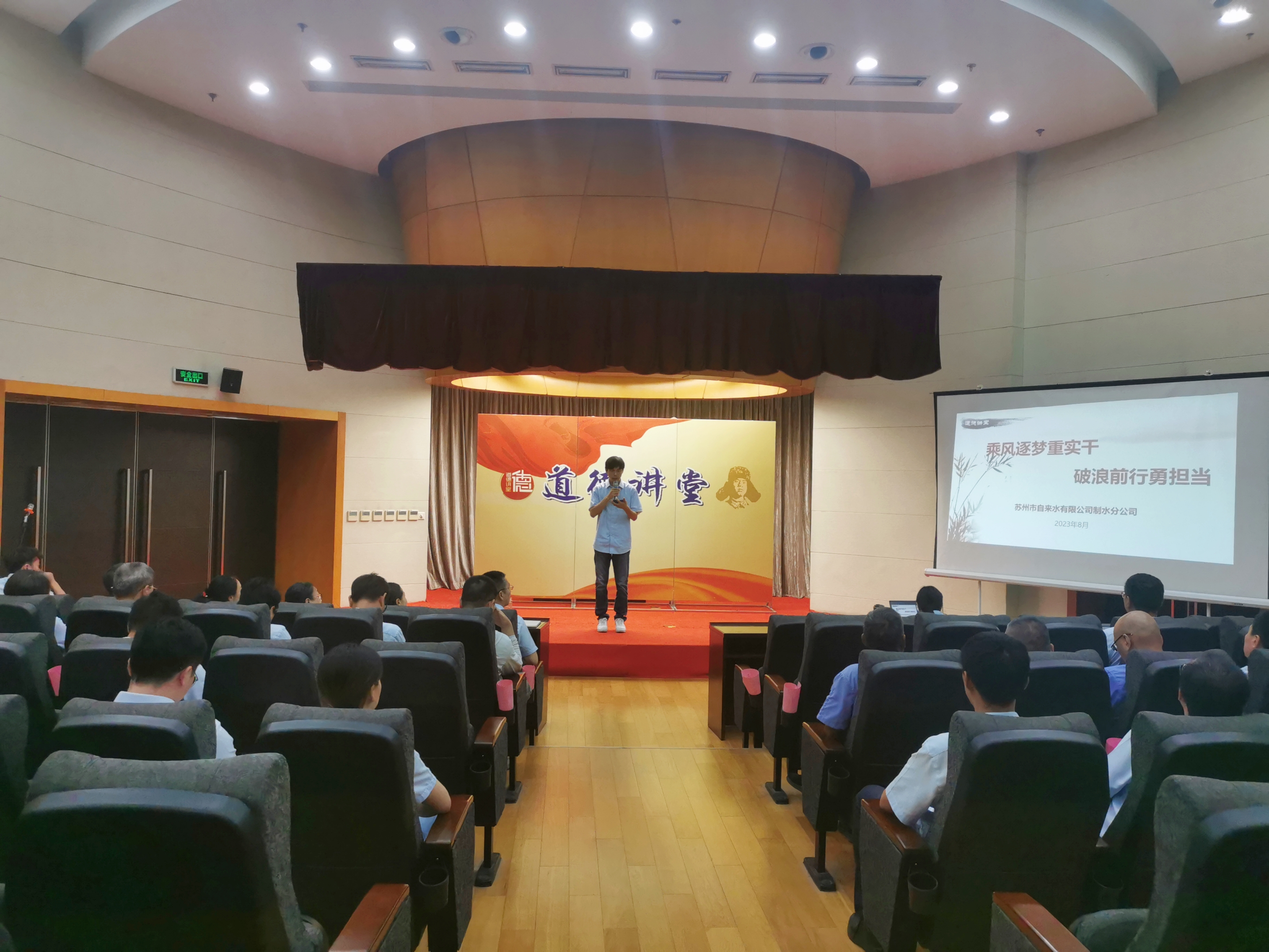 8月18日下午,制水分公司黨支部舉辦了以“乘風逐夢重實干、破浪前行勇擔當”為主題的道德講堂,公司50余名黨員職工參加活動。