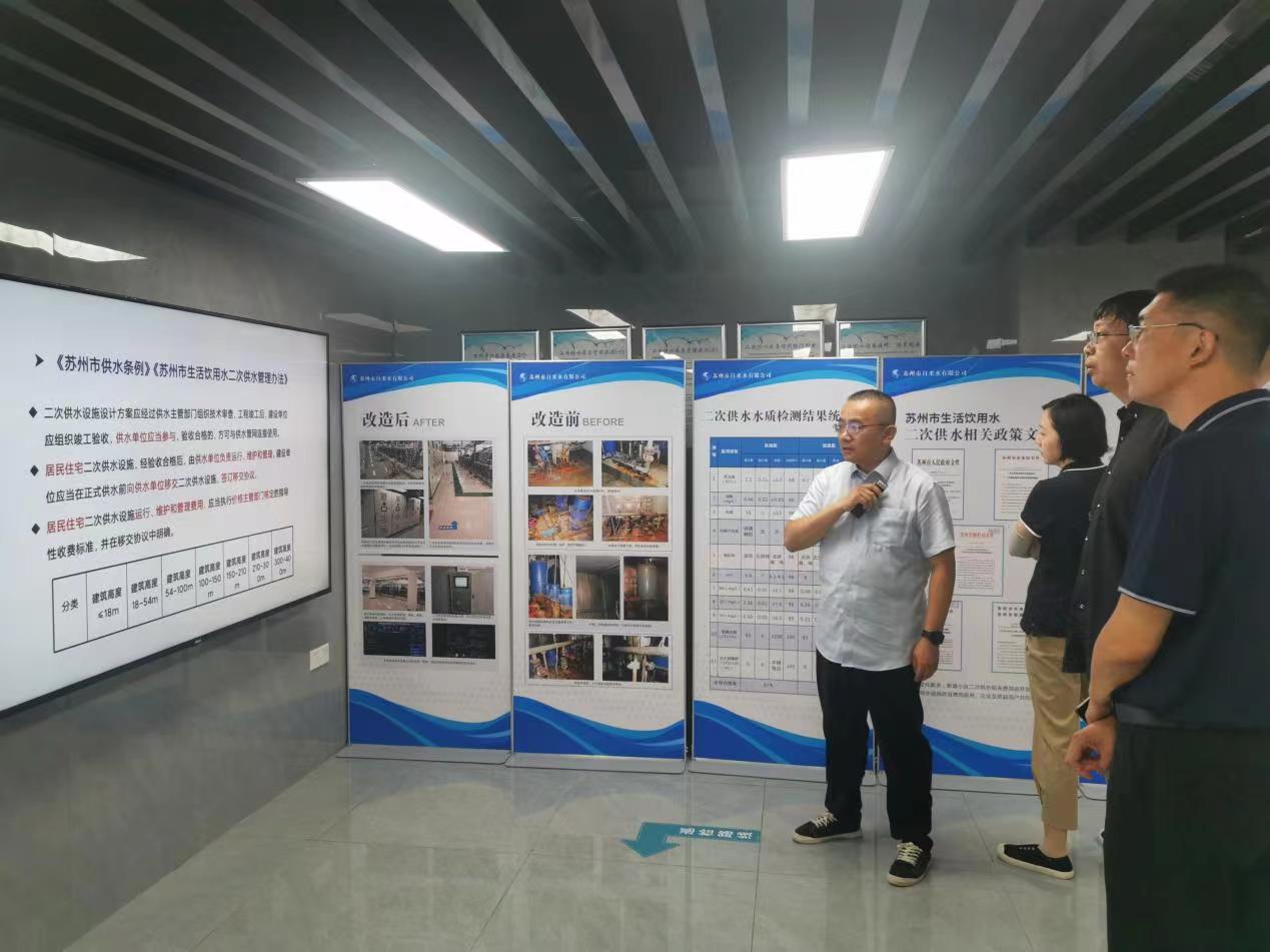 8月23日下午,蘇州市水務局陪同沈陽市水務局調研組赴市自來水公司進行調研交流,制水分公司及相關部門負責人隨行陪同。