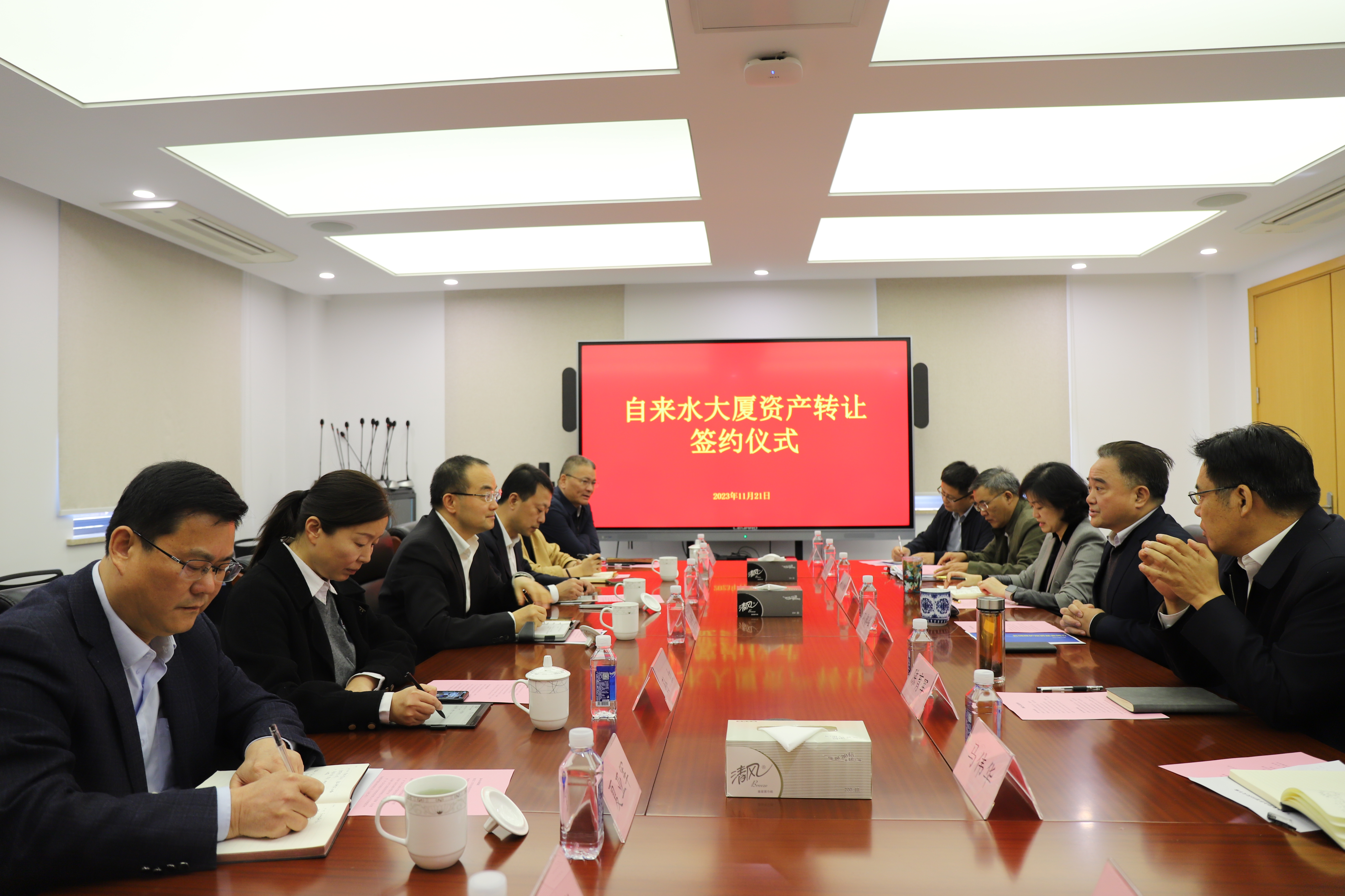 隨后,雙方代表共同簽署蘇州市自來水有限公司人民路及通關坊資產轉讓協議。最后,與會雙方就推進基金設立、數字孿生城市建設、城市高品質生活配套、資產歸集與活化利用等方面進行了深入探討。未來,雙方將繼續立足民生,強強聯合,深化合作,更好地承擔國有企業社會責任和擔當,協力促進古城居民生活品質提升。
