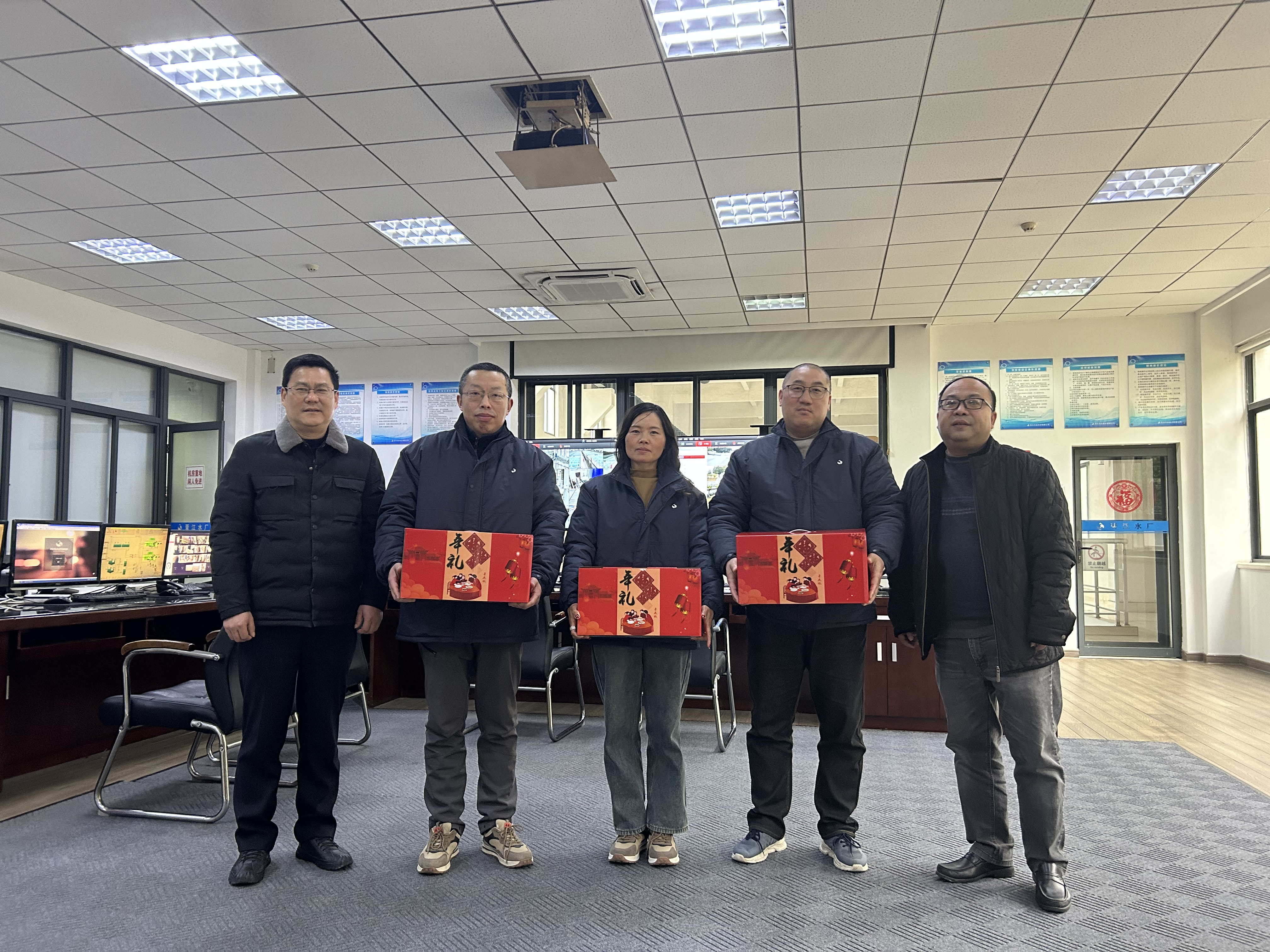 公司領導先后走訪運控中心、便民服務中心、售水分公司、制水分公司,與一線職工親切握手交談,對廣大職工一年來的辛勤付出表示感謝,并為春節期間仍需堅守崗位的職工們送上一份暖心“年夜飯”。